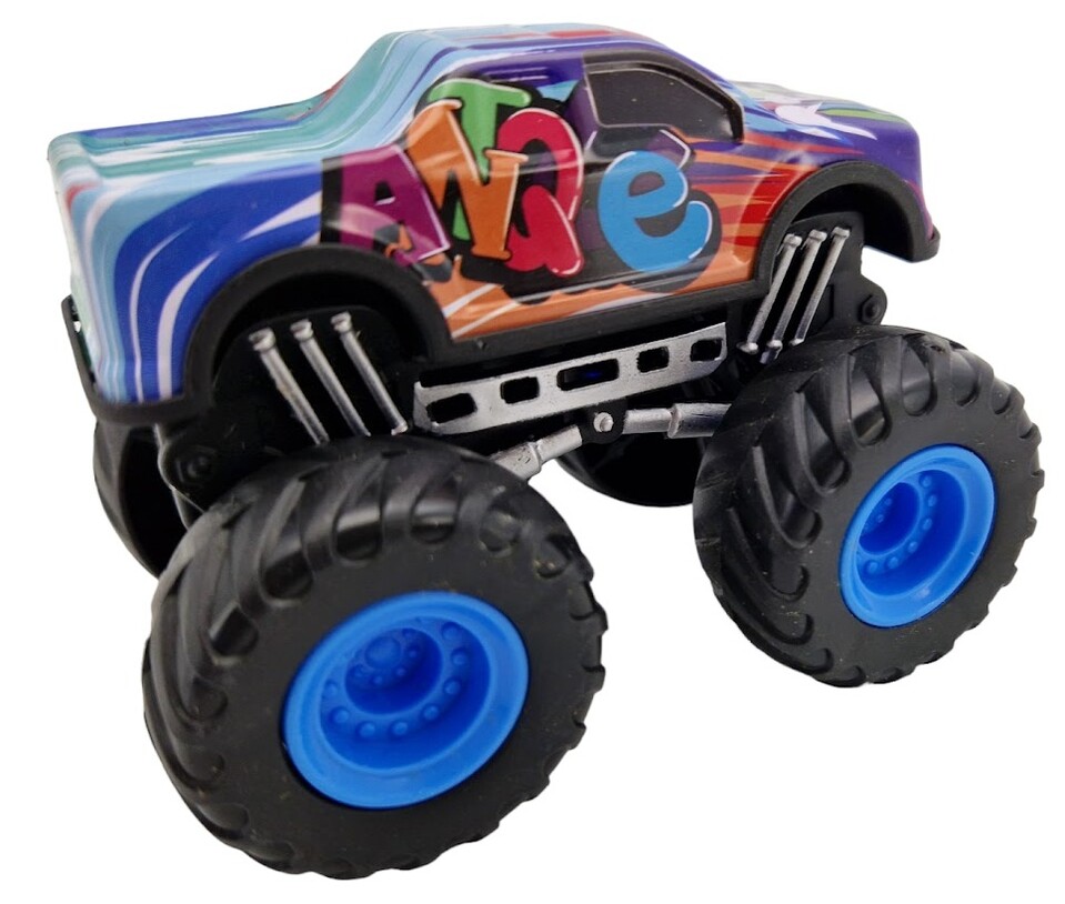 Terénne autíčko s grafitovou karosériou v rôzných motívoch. Veľkosť autíčka 9 x 6,5 cm. Auto jeep jazdí na voľný pohon.