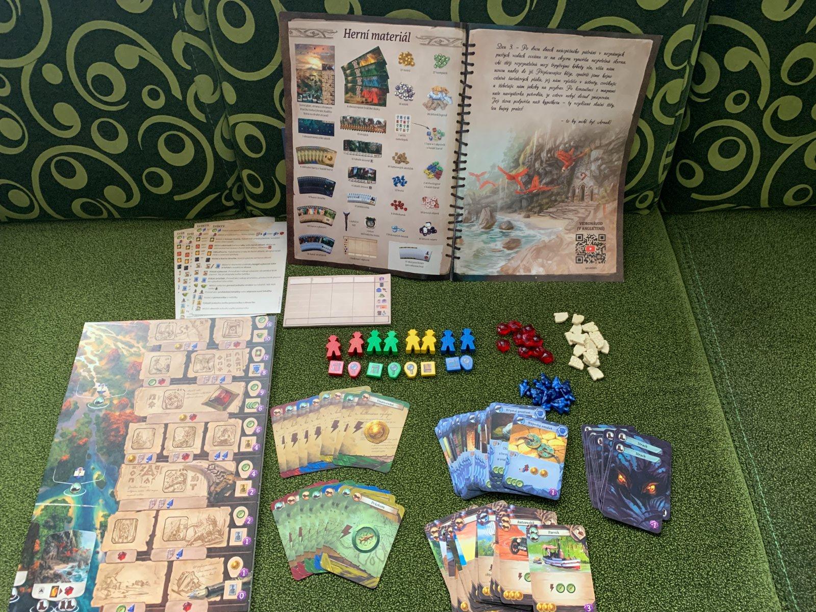 Spoločenská hra Ztracený ostrov Arnak. Je v podstate nová, len krabica trochu šuchnutá z prekladania hore dole. Bola len raz rozložená, ale pre nás príliš komplikovaná, takže asi skôr pre náročenejších hráčov. Dieliky vložené späť do plátov, takže vidíte, že nič nechýba a že tým pôsobí ako nová.