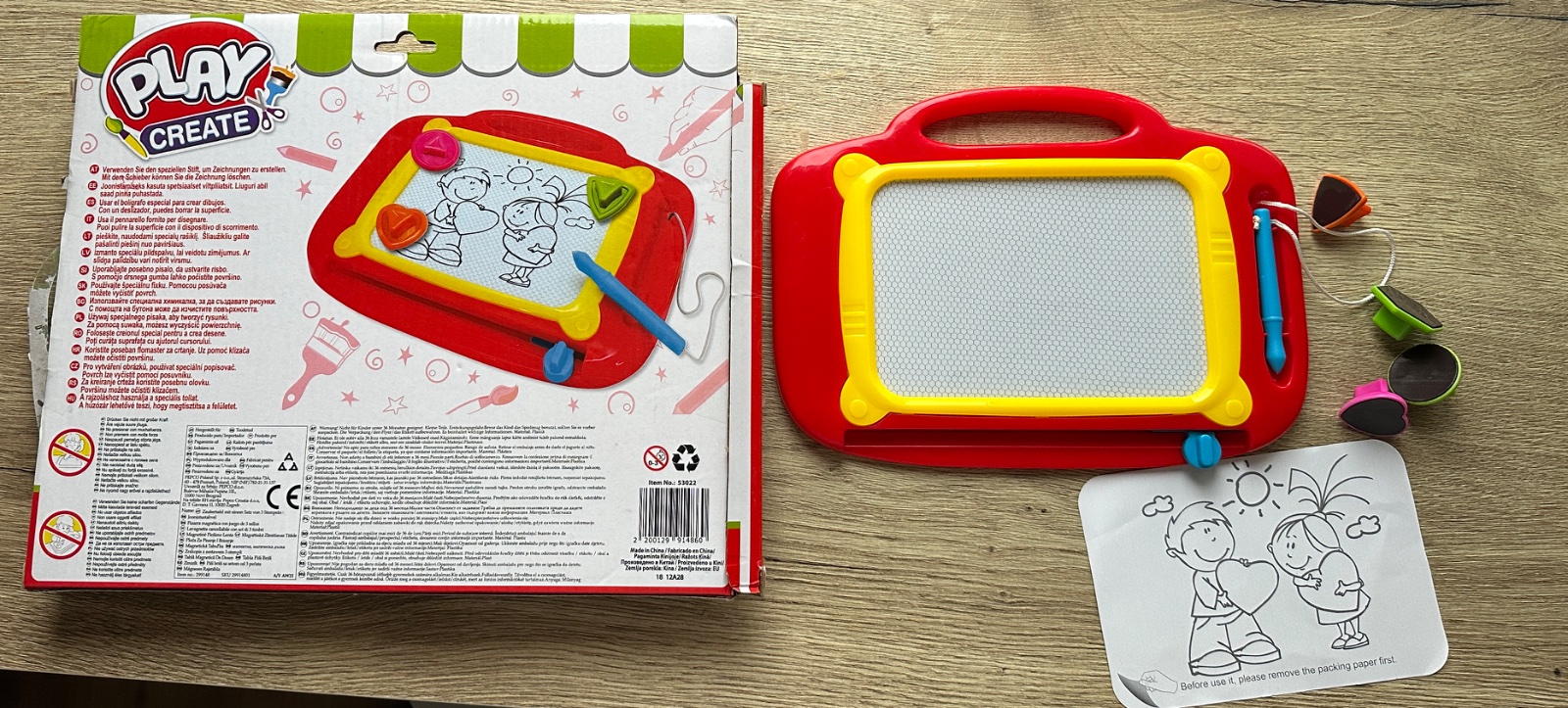 ☘️❤️Predám detskú magnetickú kresliacu tabuľku Play Create – Doodle Board– pre deti 3+. Píše sa na ňu priloženým perom, kresbu stačí zmazať posuvníkom a môže sa kresliť znova. V balení sú aj 4 pečiatky a šablónka/obrázková kartička (viď foto).☘️❤️