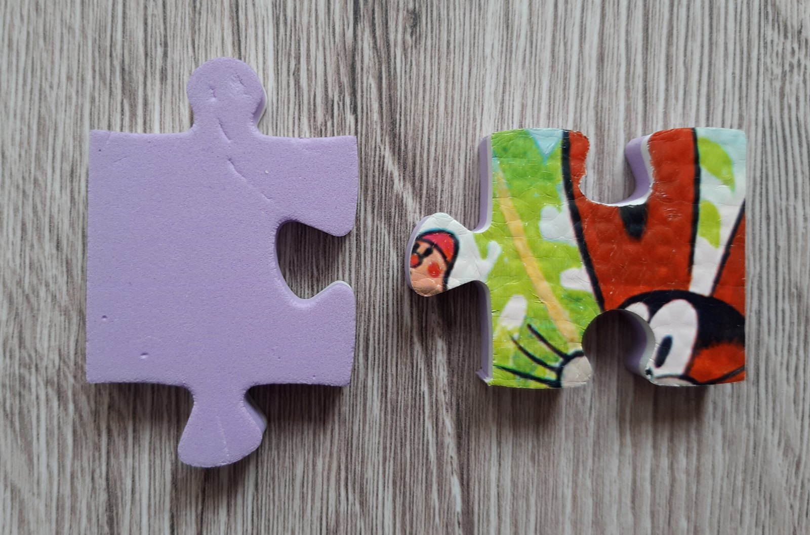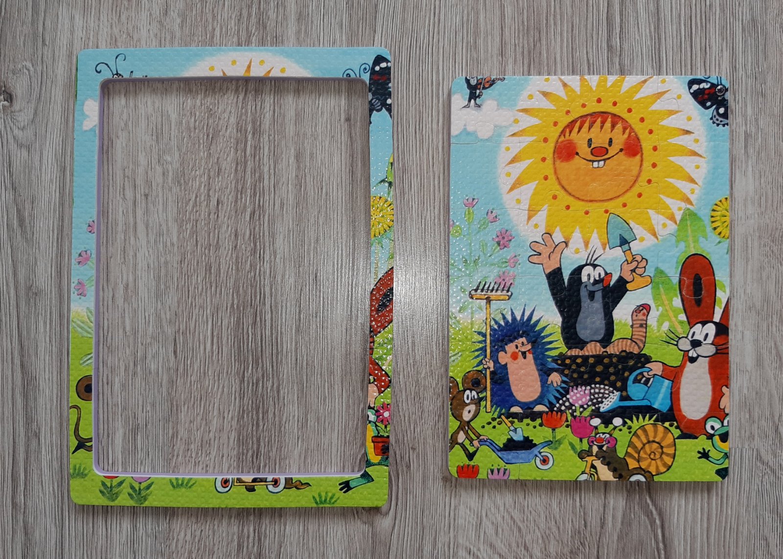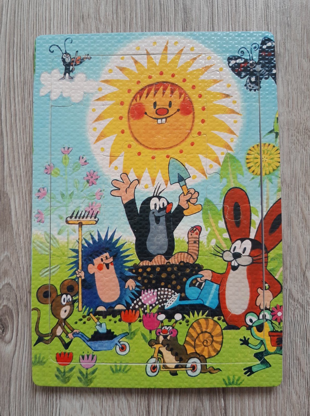 Penové puzzle s motívom obľúbeného Krtečka vo veľmi dobrom hranom stave (bez chýbajúcich častí; niektoré dieliky sú trochu obšúchané, zo zadnej strany majú ryhy (detail viď foto č. 4)). Balenie obsahuje 24 kusov dielikov, ktoré sa vkladajú do pripraveného rámika (detail viď foto č. 2). Puzzle sú vhodné pre deti od 3 rokov.
