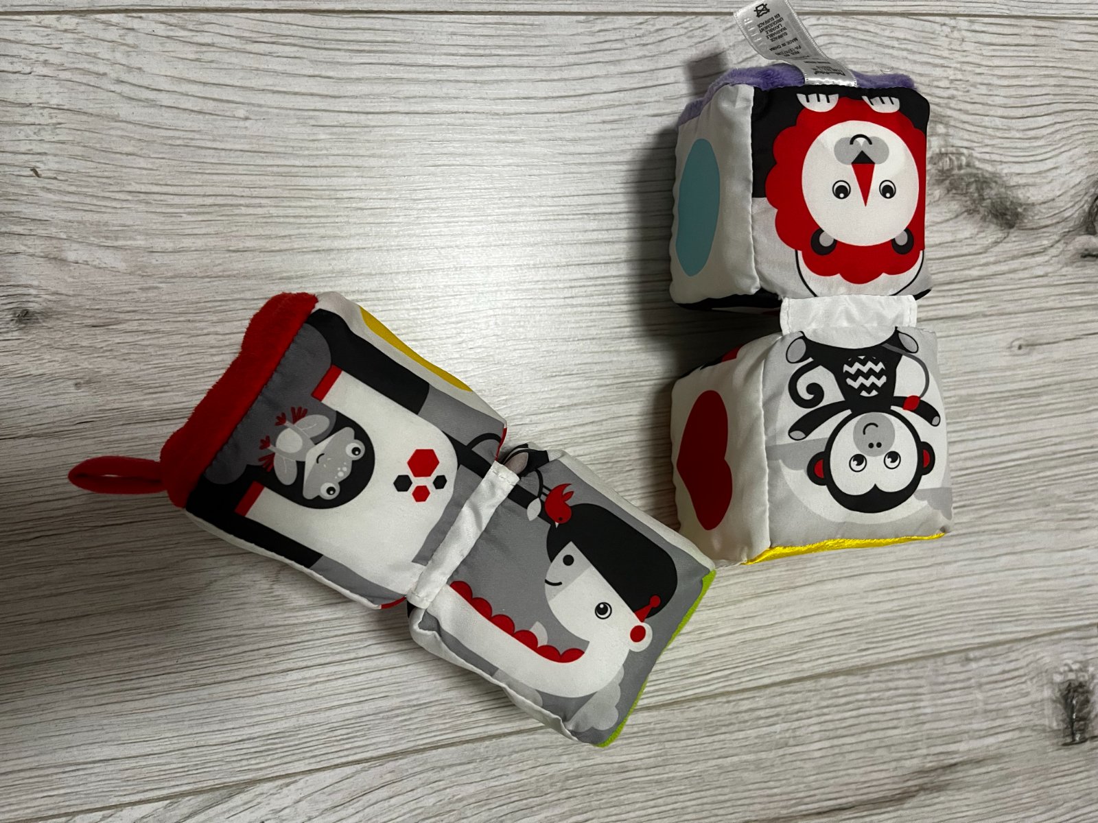 Vaše dieťatko sa vďaka nim zoznámi s tvarmi, číslami, farbami a zvieratkami a zároveň bude môcť skúmať rôzne typy látok, ktoré pomôžu rozvoju hmatu. Vďaka praktickému zrkadielku bude tiež môcť skúmať seba samo a ako bonus sa môže hrať s rolničkou, ktorej cinkavý zvuk bude stimulovať rozvoj sluchu. Šikovné pútko navyše umožňuje kocky pripevniť ku kolíske alebo kočíku.