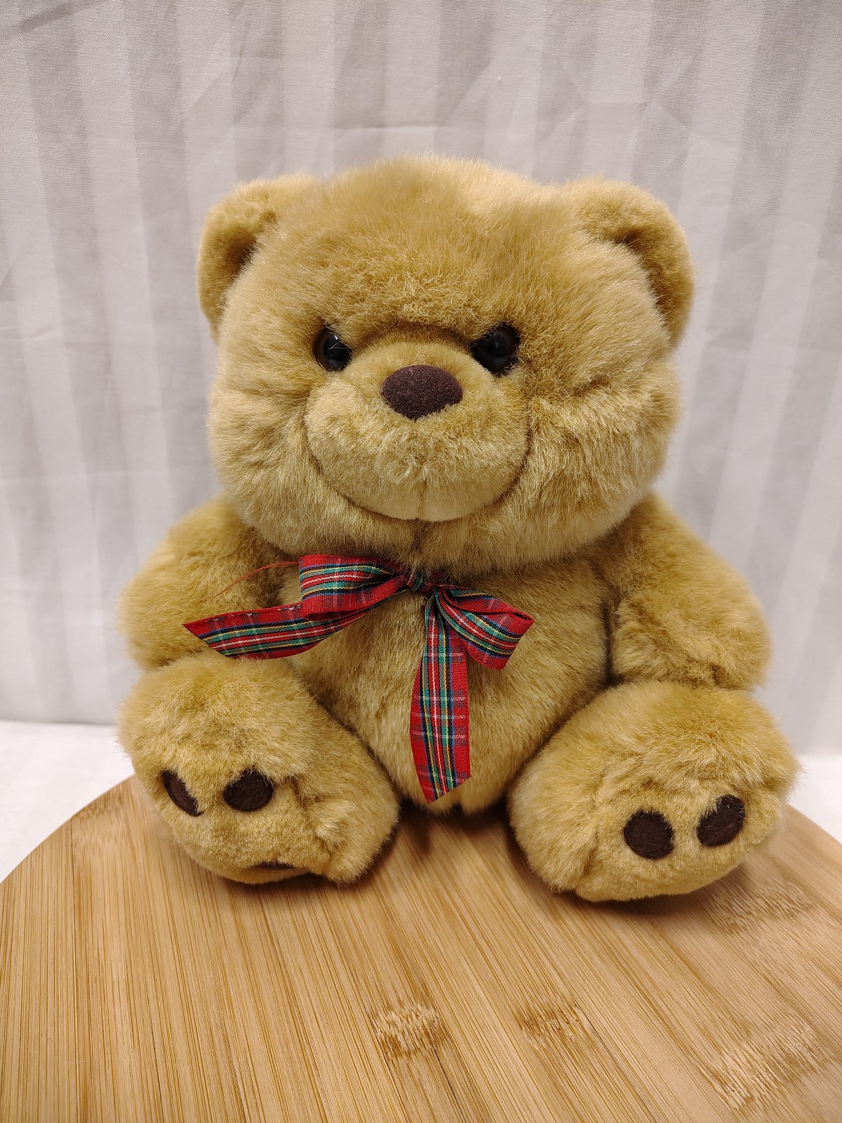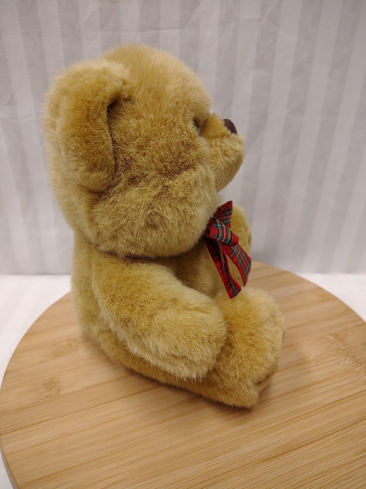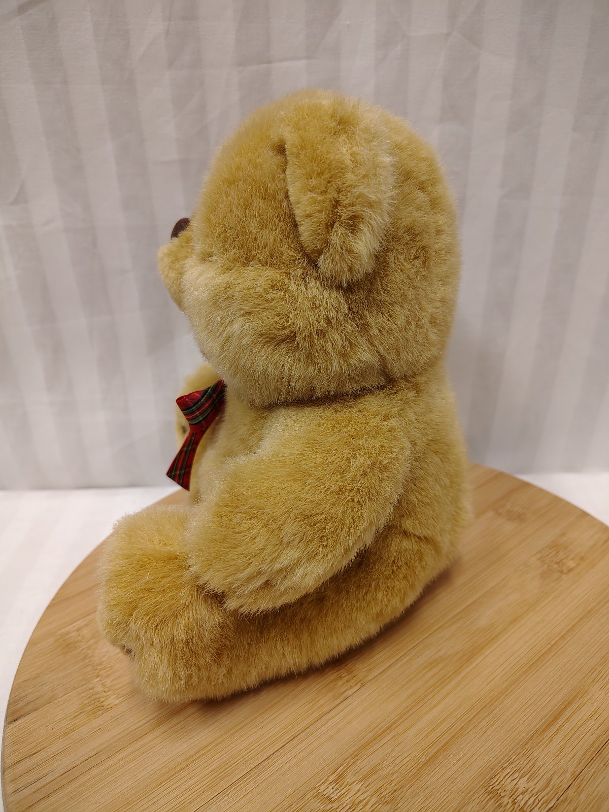 Plyšový hnedý medveď s mašlou, sediaci, okolo krku má mašľu, vyrobený z kvalitného jemného a mäkkého plyšového materiálu,