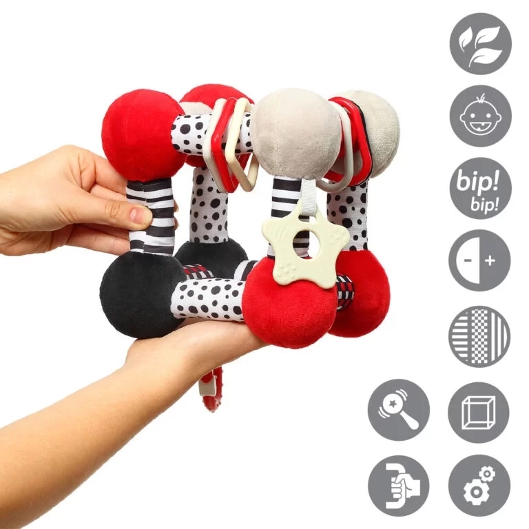 hračka má kontrastné farby na podporu vizuálneho vývoja dieťaťa