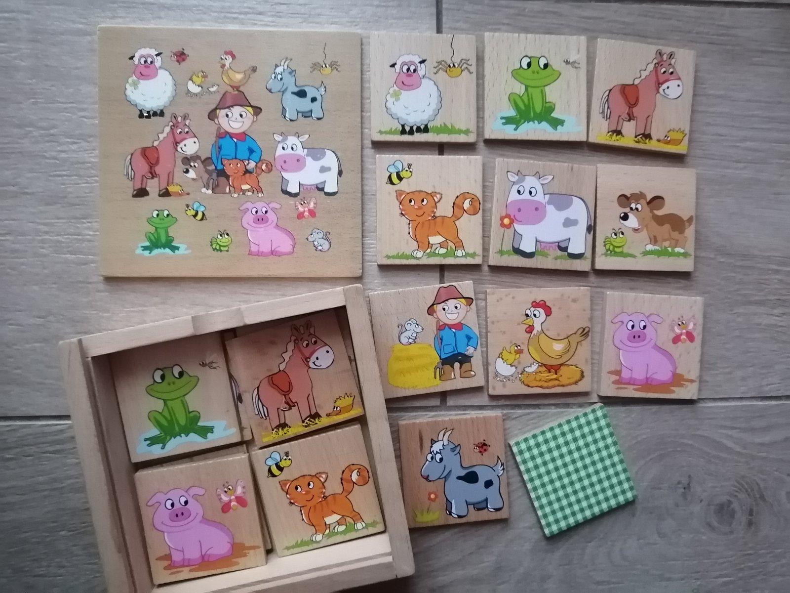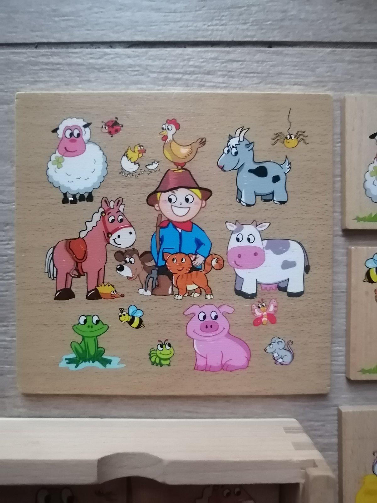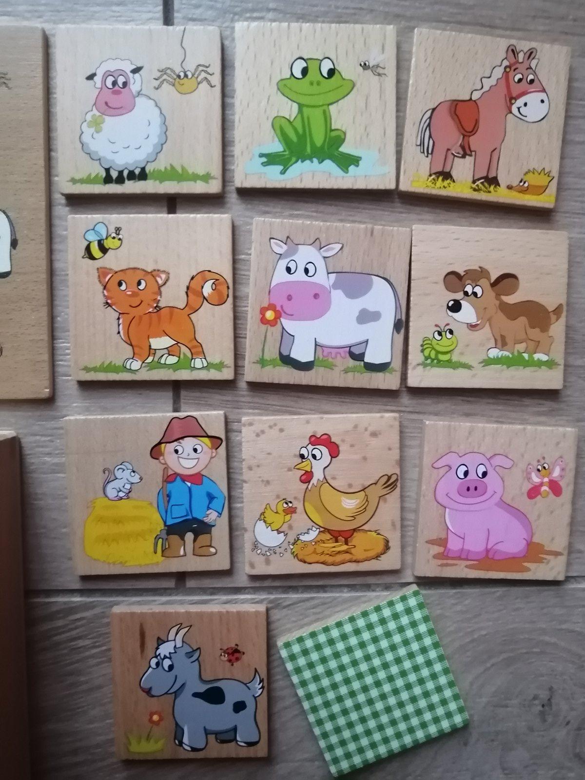 20 dielne, čiže 10 párov : ovečka, sliepka, koza, kôň, krava, prasiatko, žaba, mačka, pes, farmár