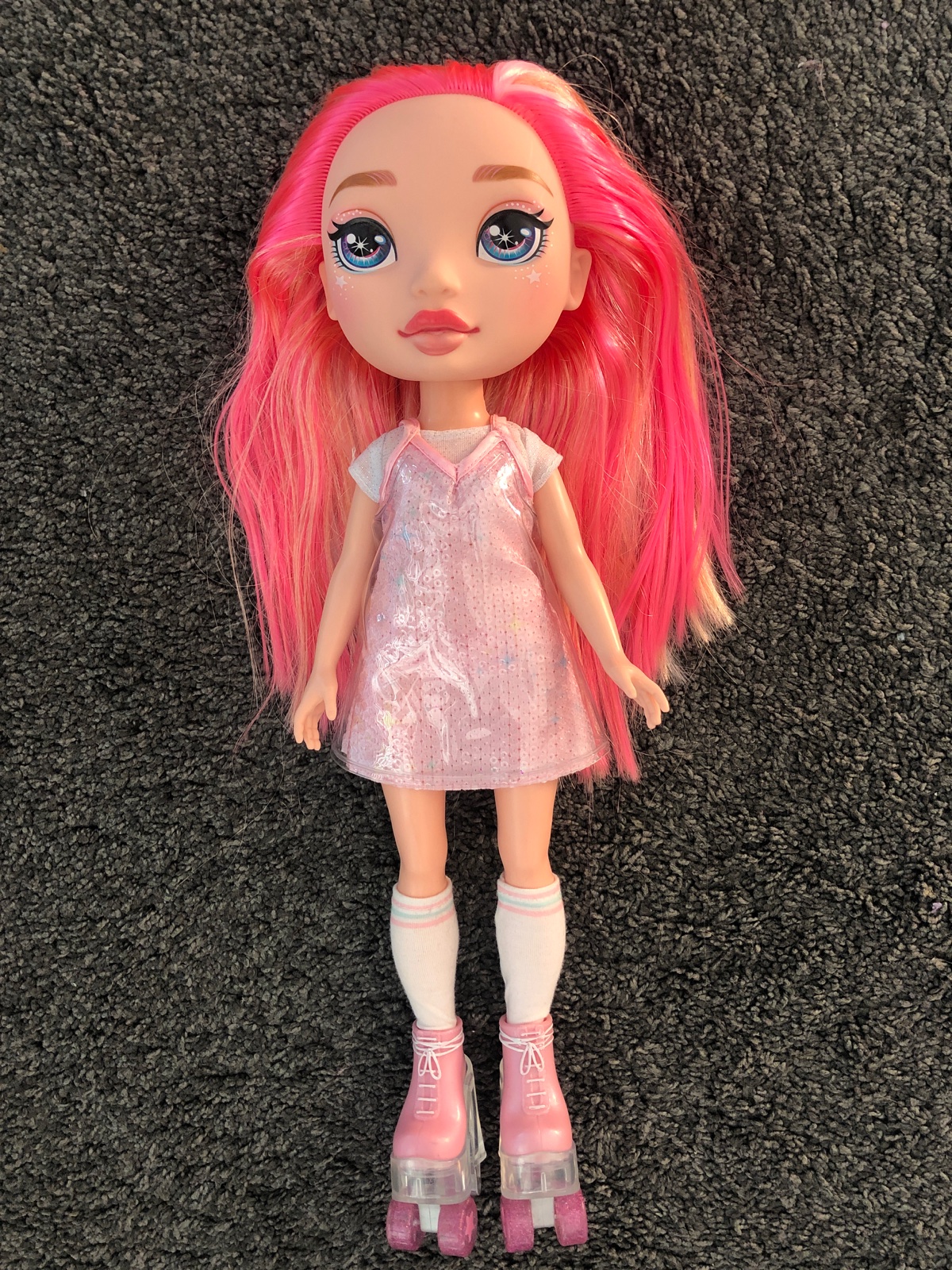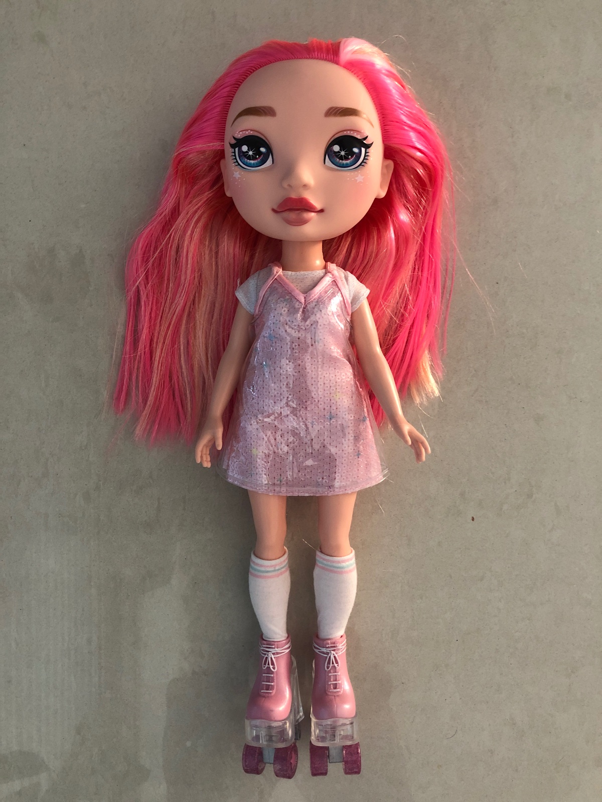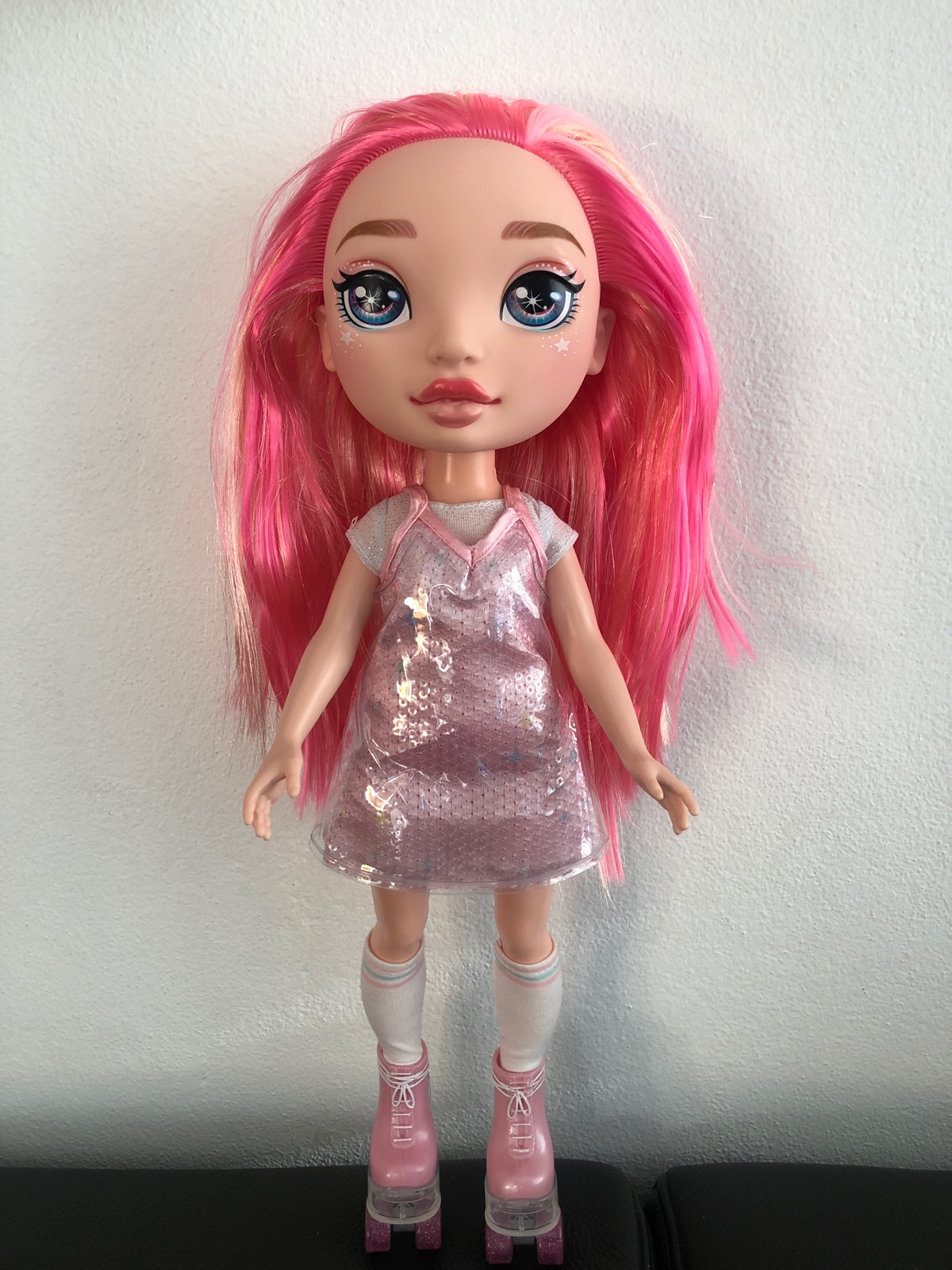Krásna vysoká bábika Rainbow dúhová rúžová, ako nová ale bez príslušenstva, výška 38 cm