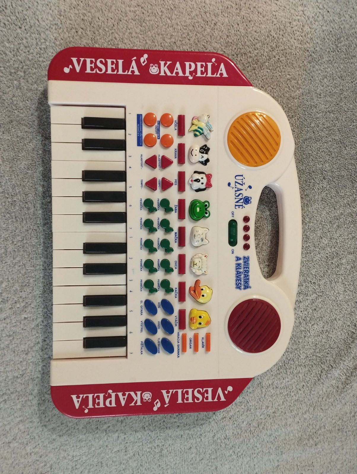 Klavír vesela kapela,aj zvuky zvierat, aj pesničky,bubny ,plne funkčný, na dobierku neposielam ani nevymienam