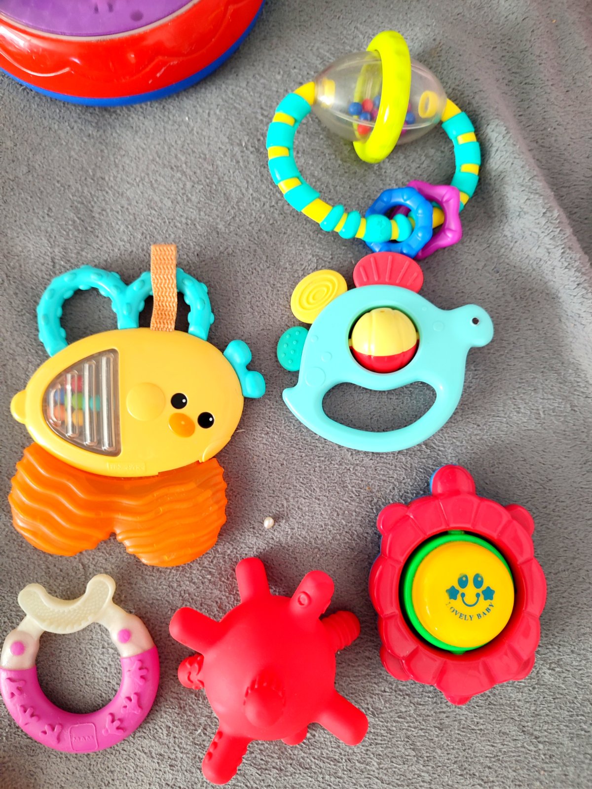Mix hraciek, asi skor pre malu slecnu…kufrik na vkladanie tvarov Fisherprice, meracia hovoriaca žaba tiez Fisher price, babika s prislusenstvom na kupanie, mini motylia víla, auticko, na jemnu moto...