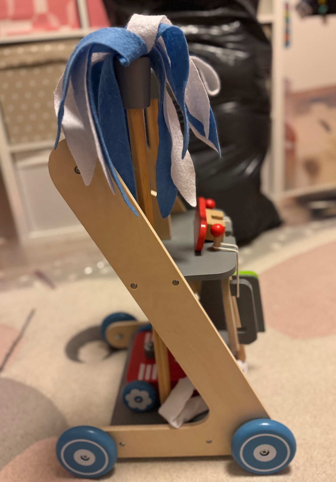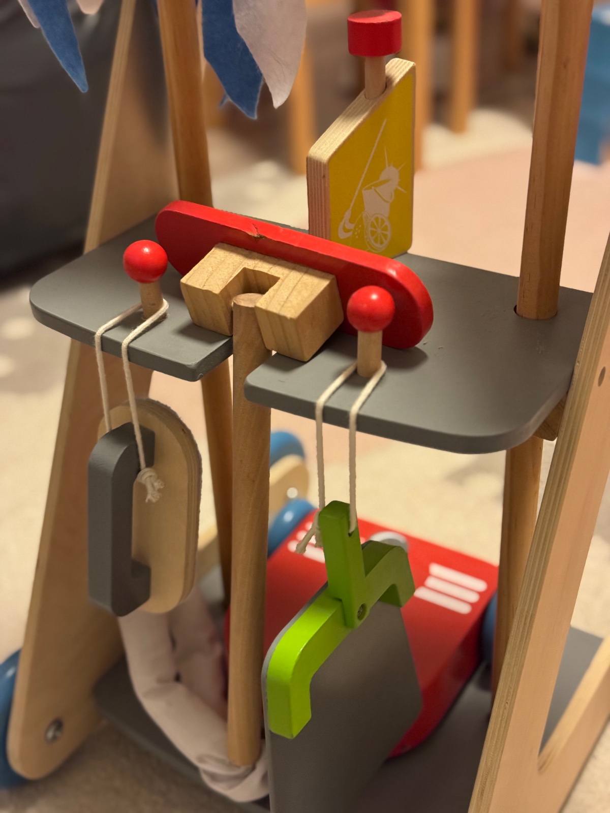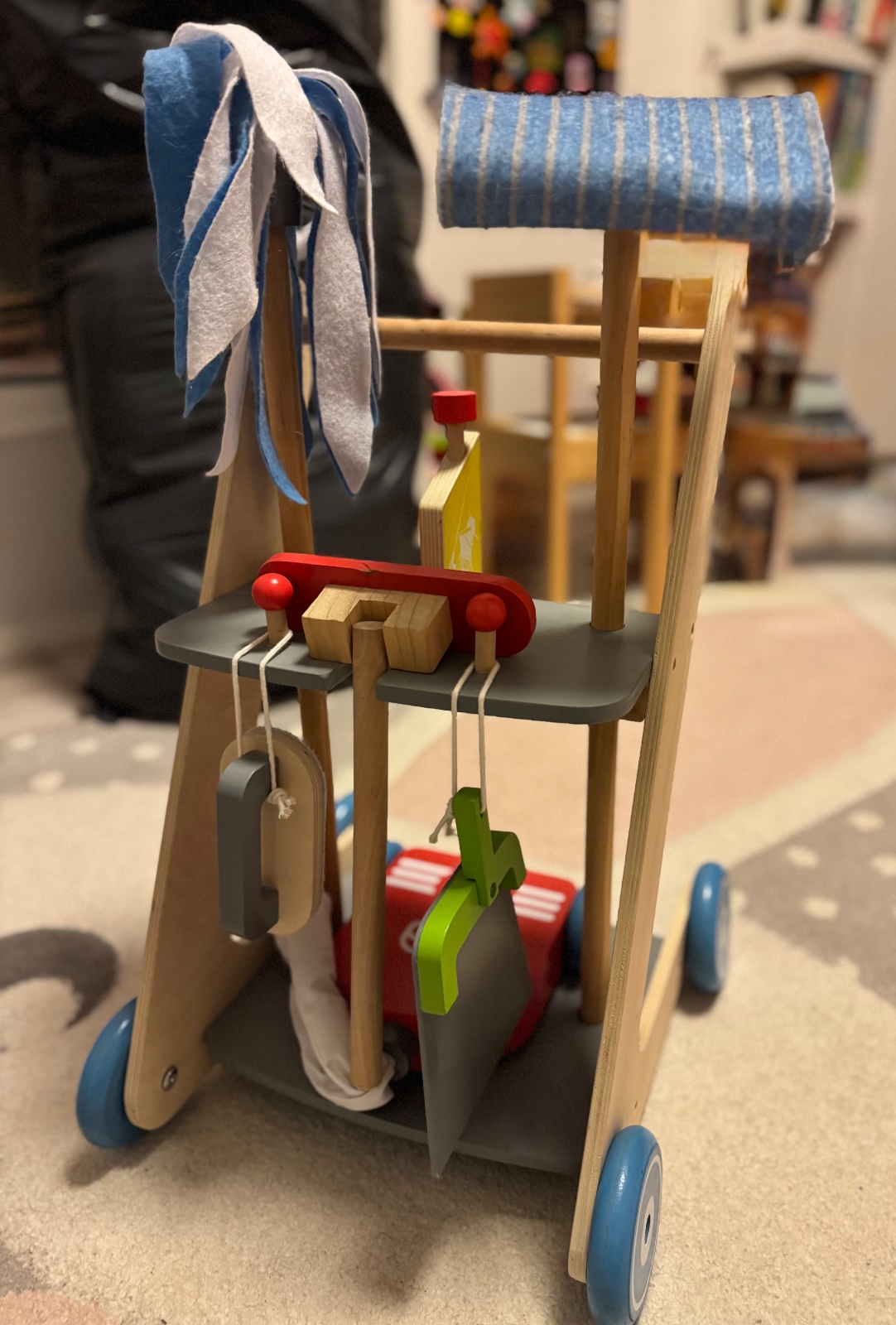 Predam drevený upratovací vozík pre deti. Je kompletný, poke funkčný, má známky bežného používania, všetko vidieť na fotkách. Osobný odber Bratislava ruzinov. 10€