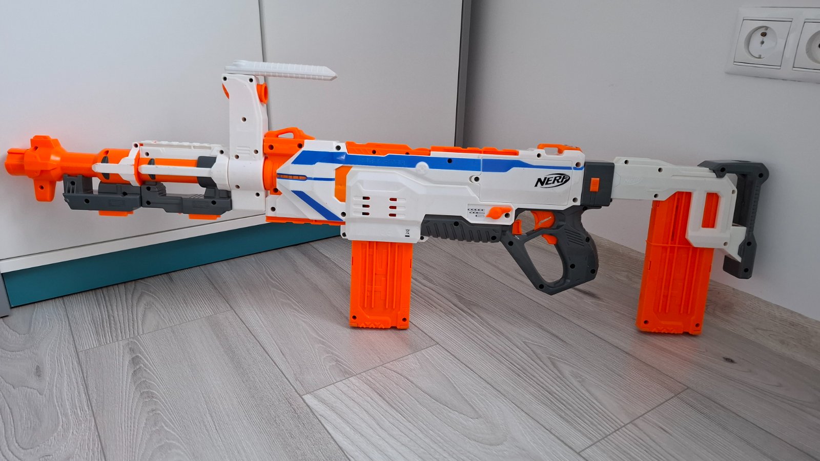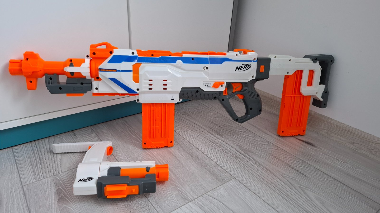 Dobrý deň. Predám Nerf Modulus Regulator, je elektrická, plne funkčná. Má známky používania- malé škrabančeky, ktoré neovplyvňujú funkčnosť. Pozrite si aj môj ďalší inzerát na Nerf.