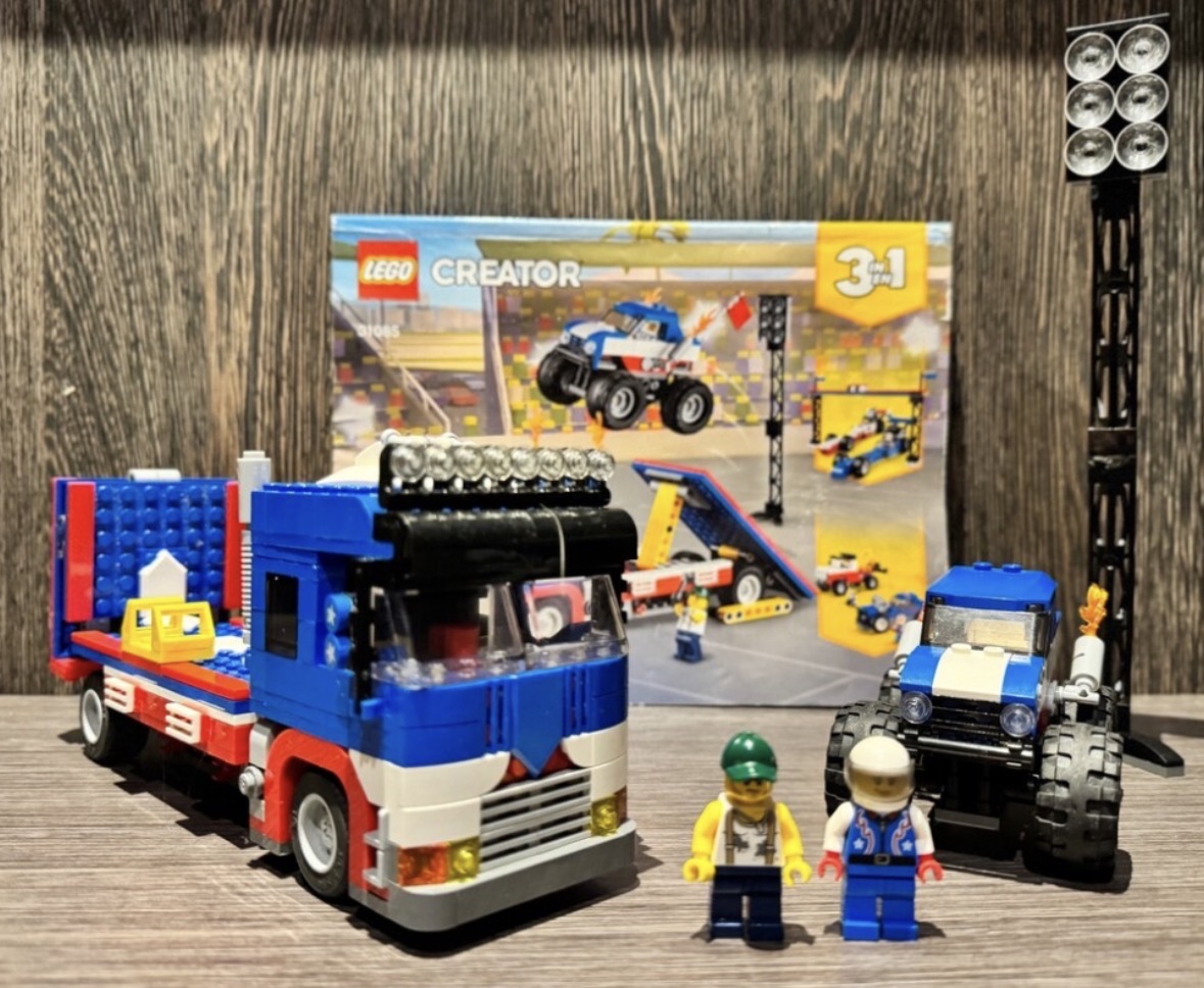 Na predaj LEGO set Creator 31085 – Mobilné kaskadérske predstavenie. LEGO je poskladané, bez originálnej krabice, s návodom.