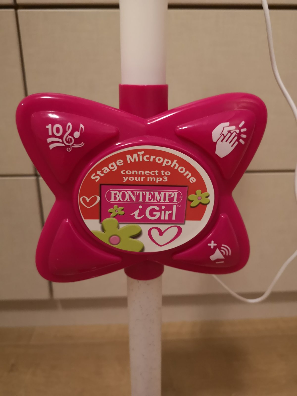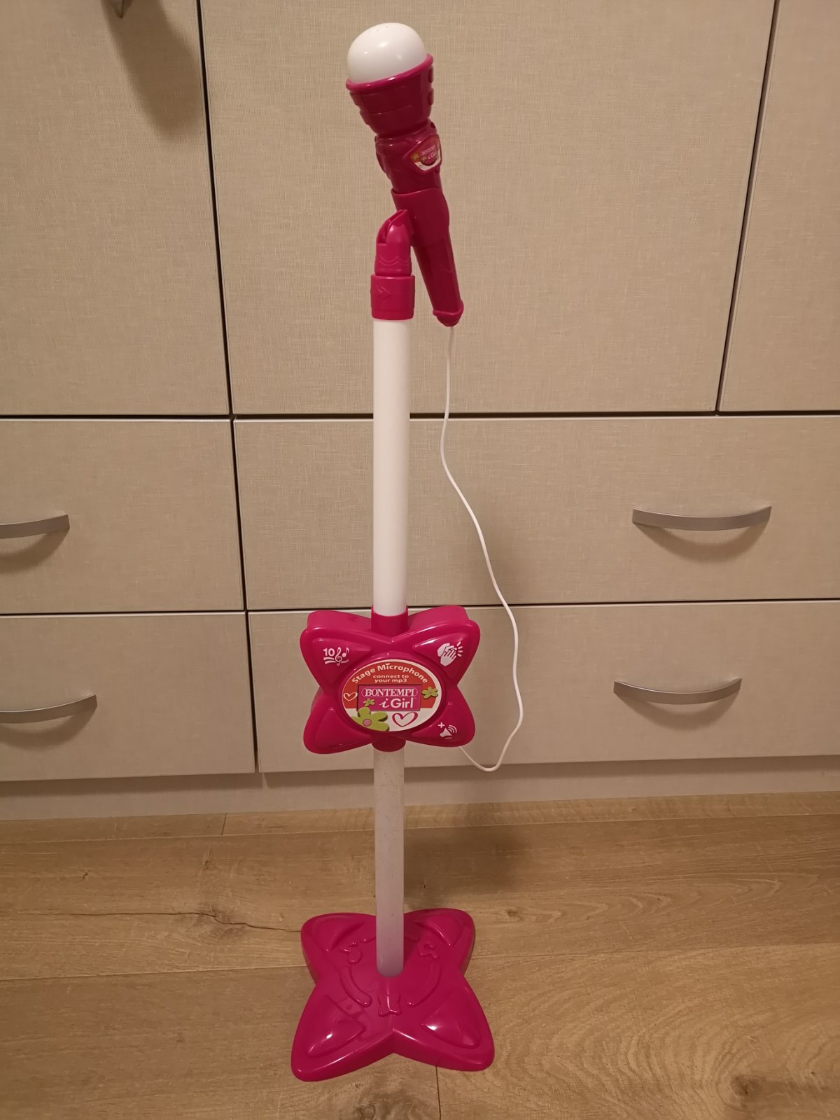 Detsky mikrofon so stojanom, plne funkcny.