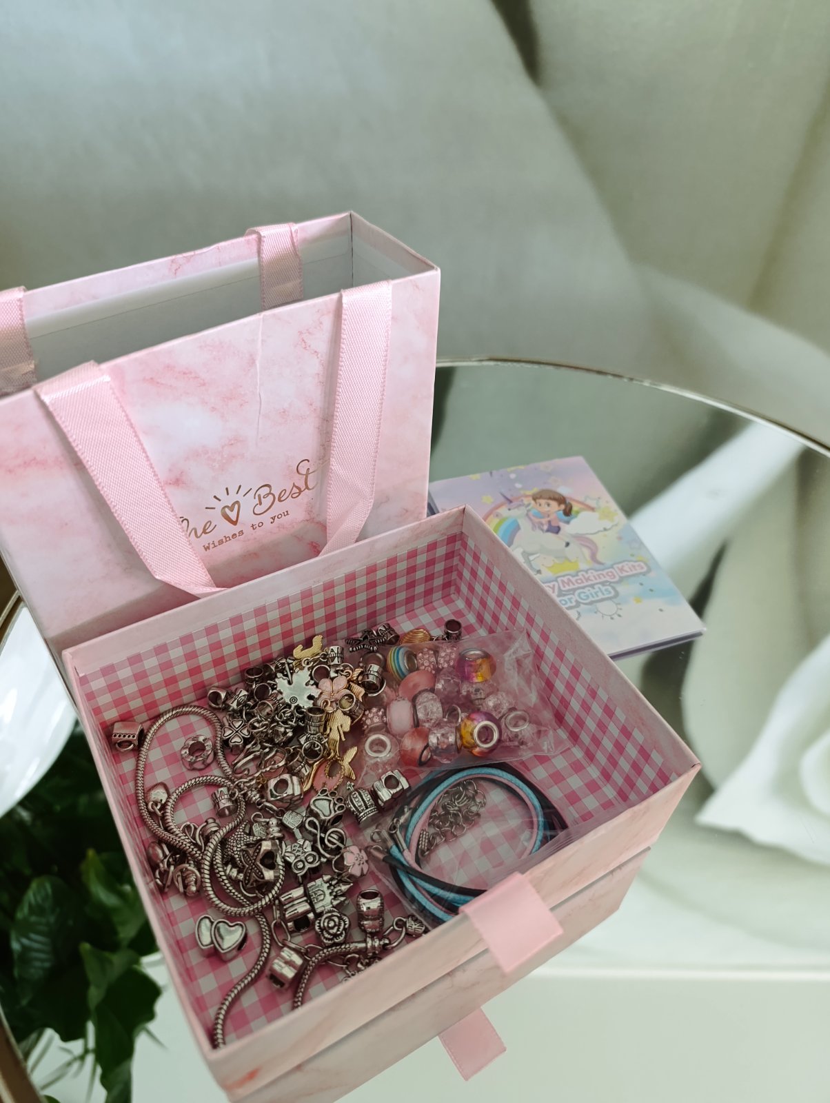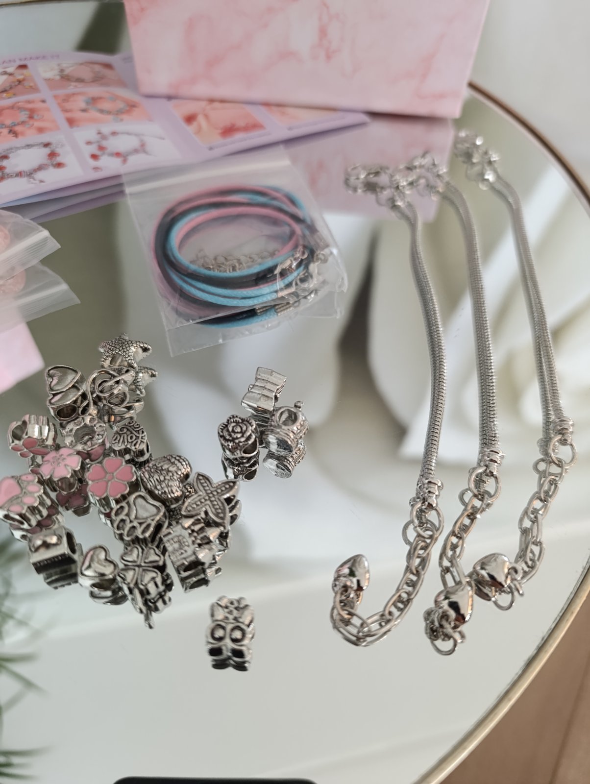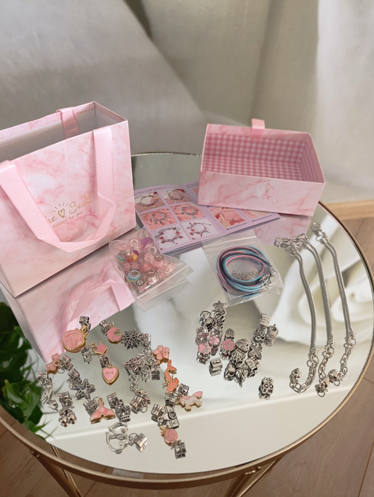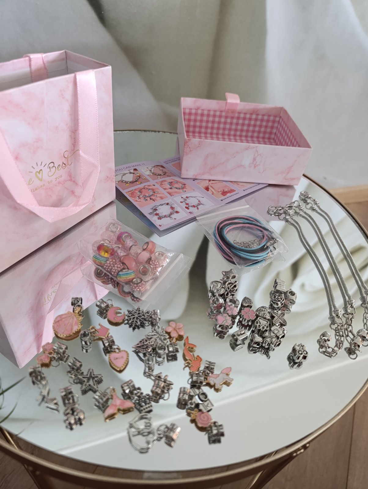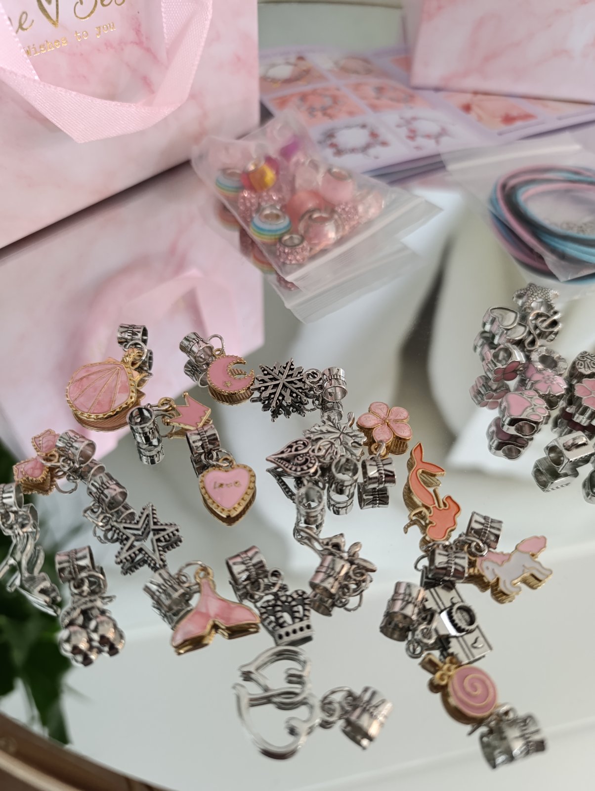 DIY súprava na náramky s príveskami jednorožec a morská panna, vrátane 60 príveskov, 3 náramkov a 3 šnúrok na náhrdelníky
