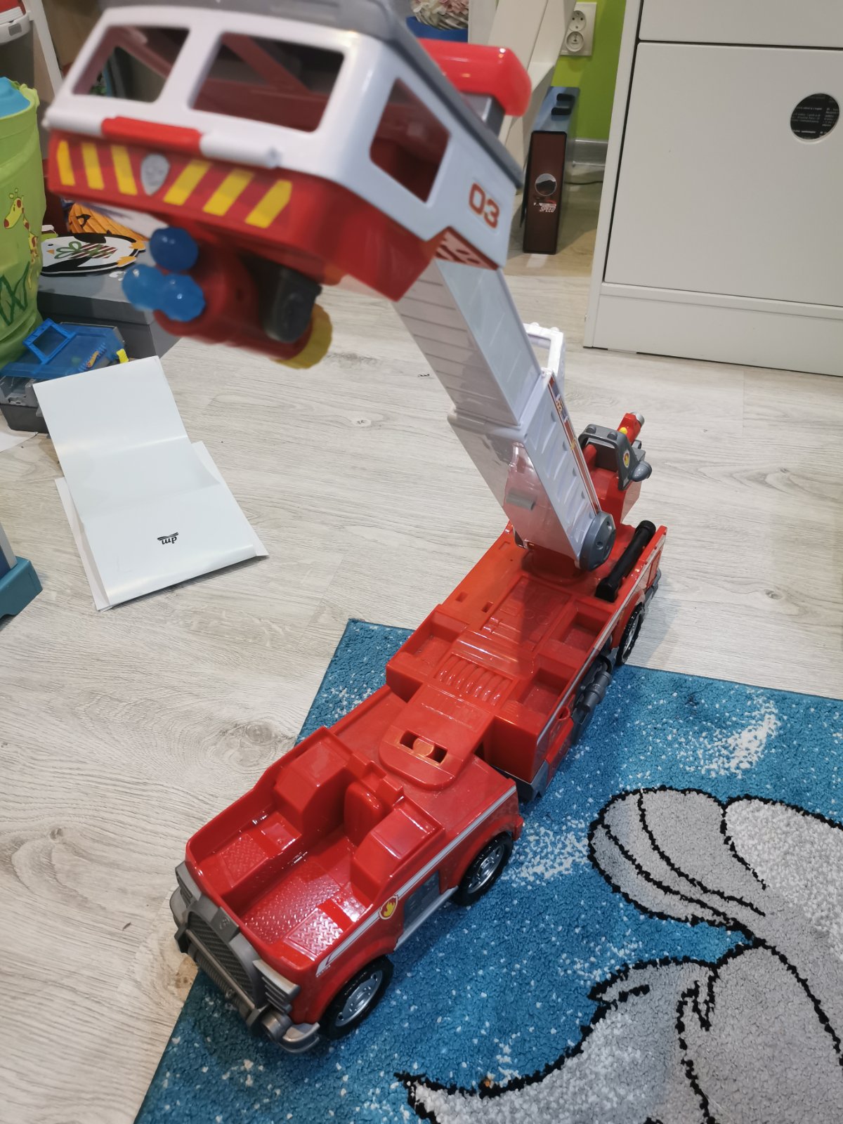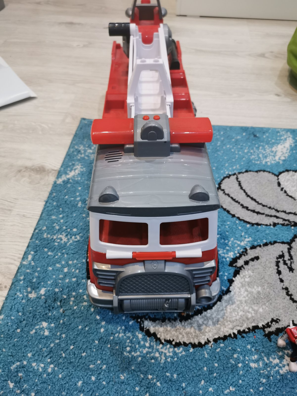 Paw patrol hasičské auto v top stave bez poškodenia,. vhodné aj ako darček. Hasičské auto Paw Patrol s dĺžkou 61 cm s výsuvným rebríkom, ktorý dosahuje výšku až 60,9 cm. Rebrík je otočný a vybavený svetlami a zvukovými efektmi, ktoré aktivujete pomocou tlačidiel na hornom paneli.