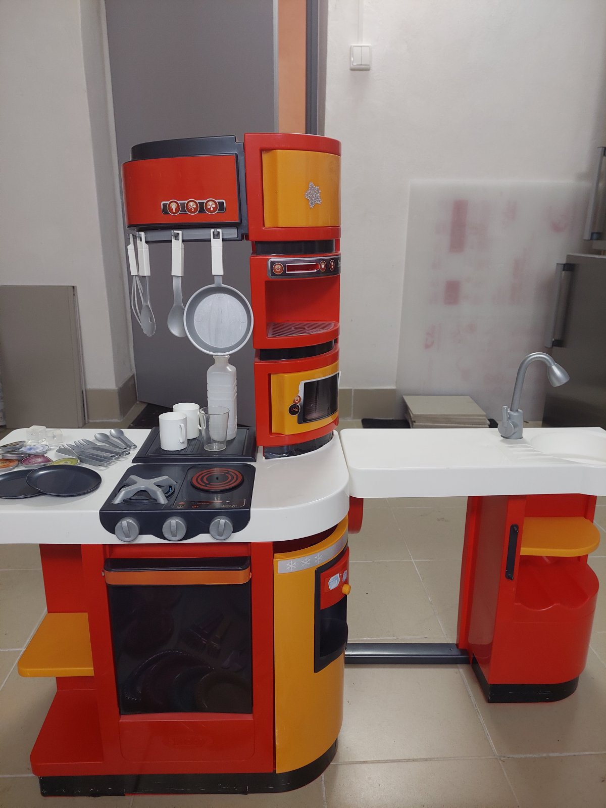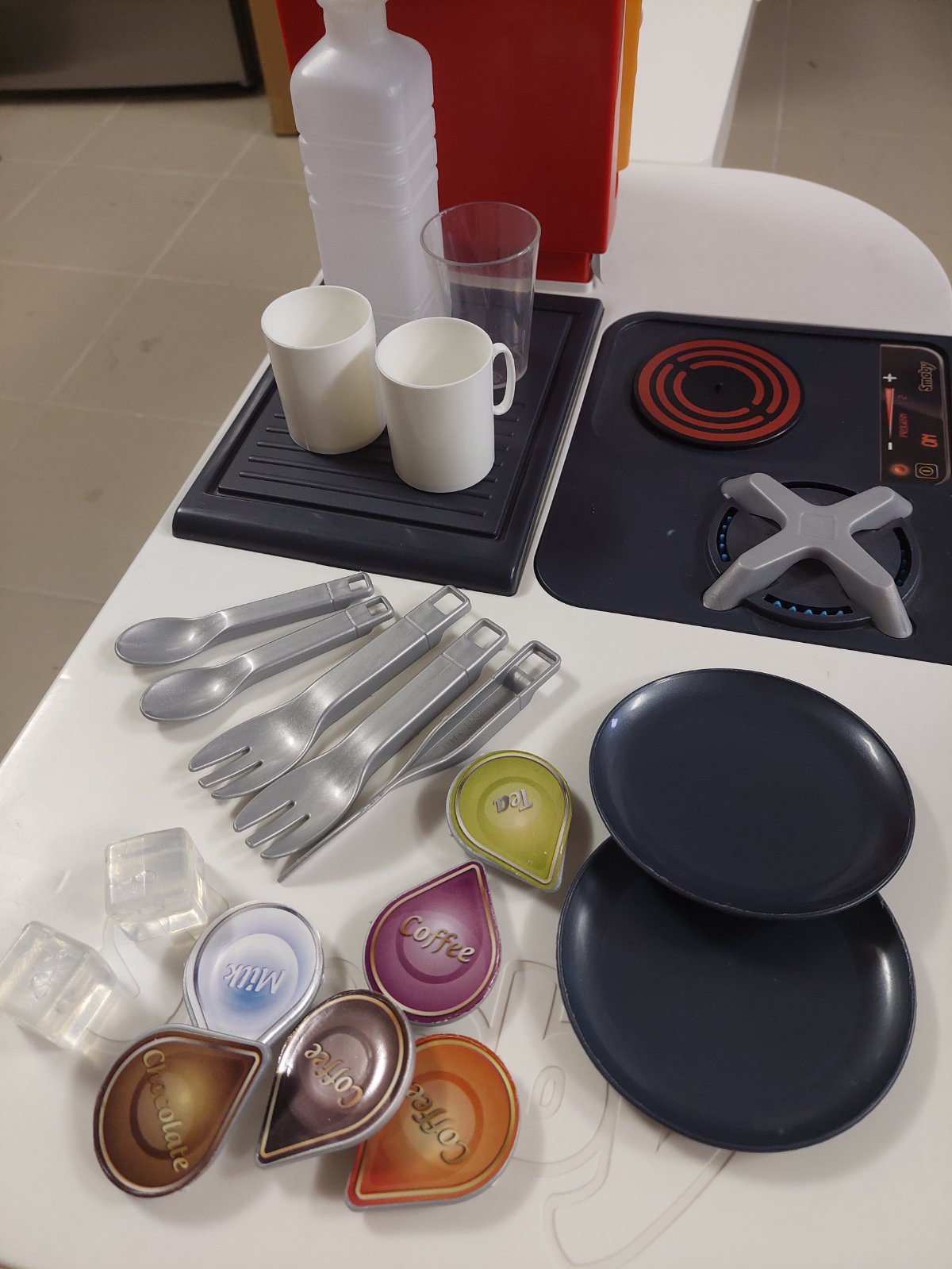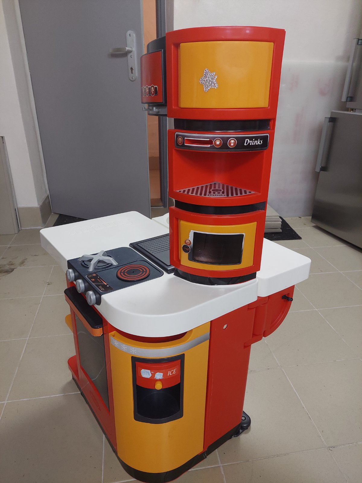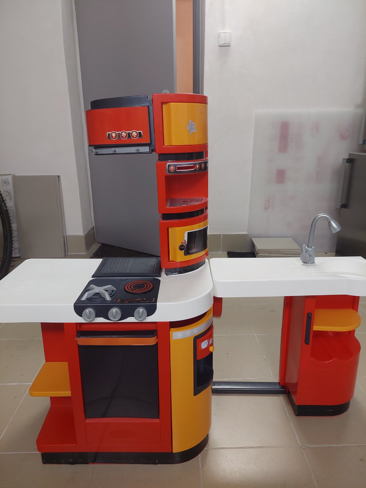 Kuchynka s príslušenstvom, dá sa zložiť dvomi spôsobmi (vidieť na fotkách, buď pozdĺžne popri stene alebo do priestoru), bežné známky používania.