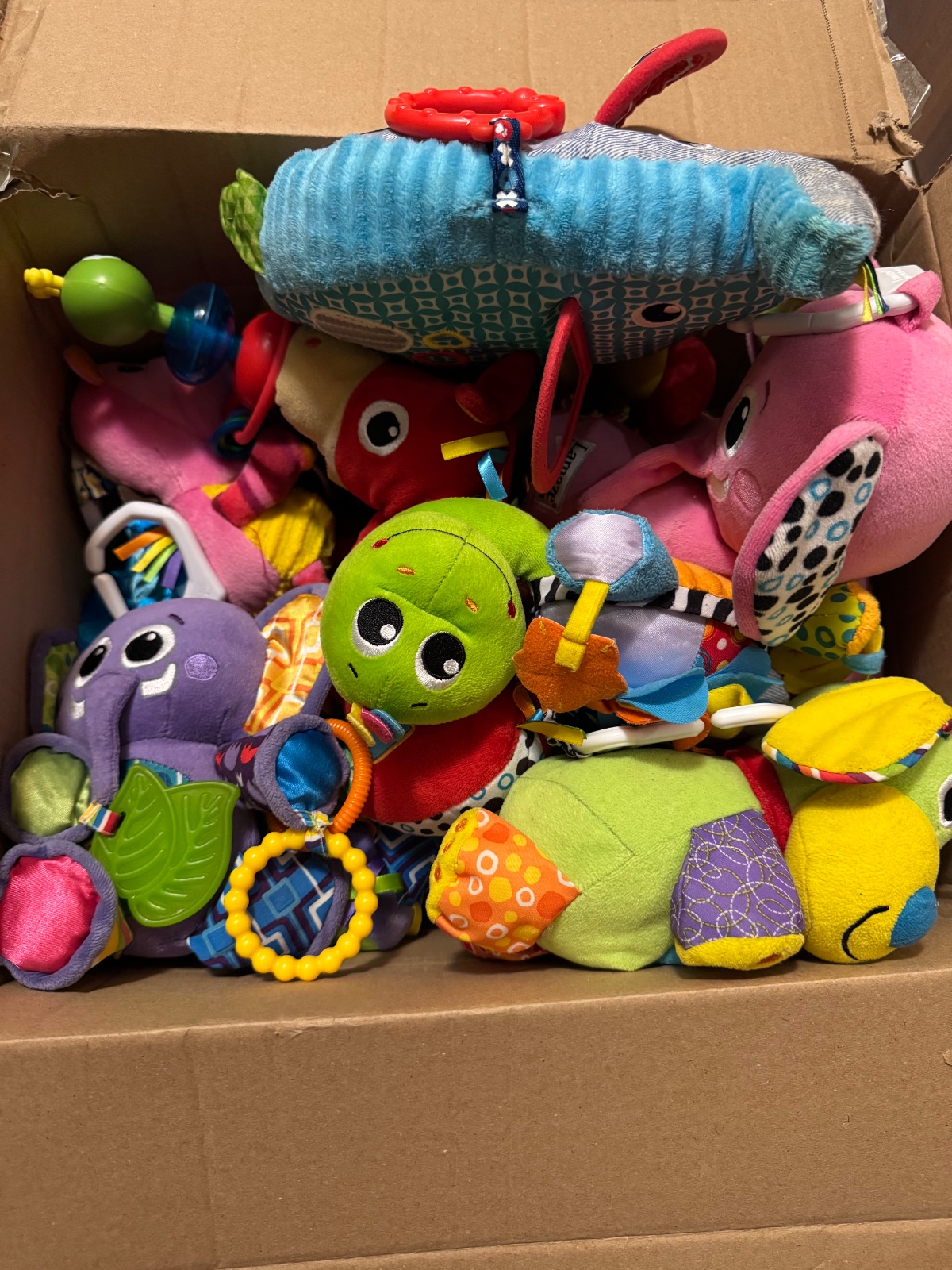 Ponúkam hračku sloník s aktivitami od FP. Hračka je vyrobená z odlišných materiálov ako je šuštivá látka, menčester či plyš a má na sebe rôzne záhyby, čím rozvíja hmat detí. Slon v sebe skrýva množstvo prekvapení. Keď s ním dieťatko zatrasie, ozývajú sa zábavné zvuky. V uchu slona nájdete zrkadlo. K dispozícii je aj hrkálka alebo farebný motýľ, ktorý pohupuje nohami. Sloníka môžete vziať všade so sebou. Stačí ho prichytiť k taške alebo ku kočíku. Je vo veľmi peknom stave. Ponúkam viacero hračiek od Lamaze, FP a pod..
