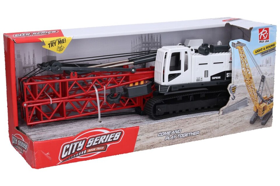 Žeriav so svetelnými a zvukovými efektmi na pásovom podvozku. Efekty sa aktivukú pomocou tlačidiel na streche žeriava. Rameno žeriava je manuálne polohovateľne.