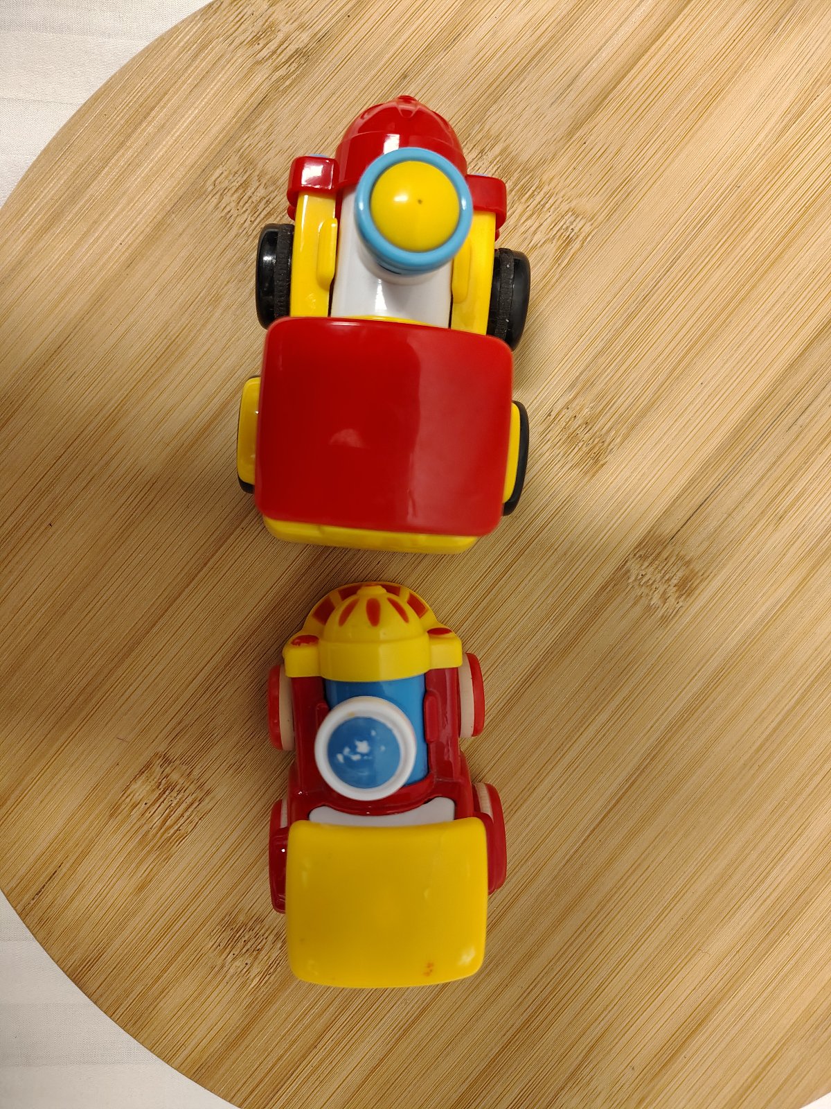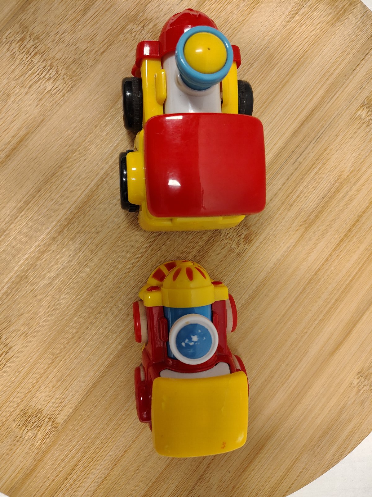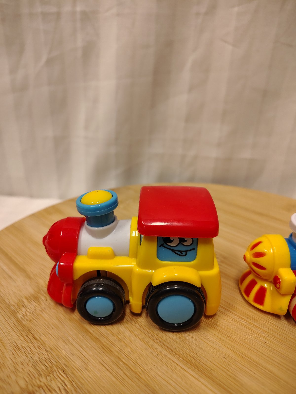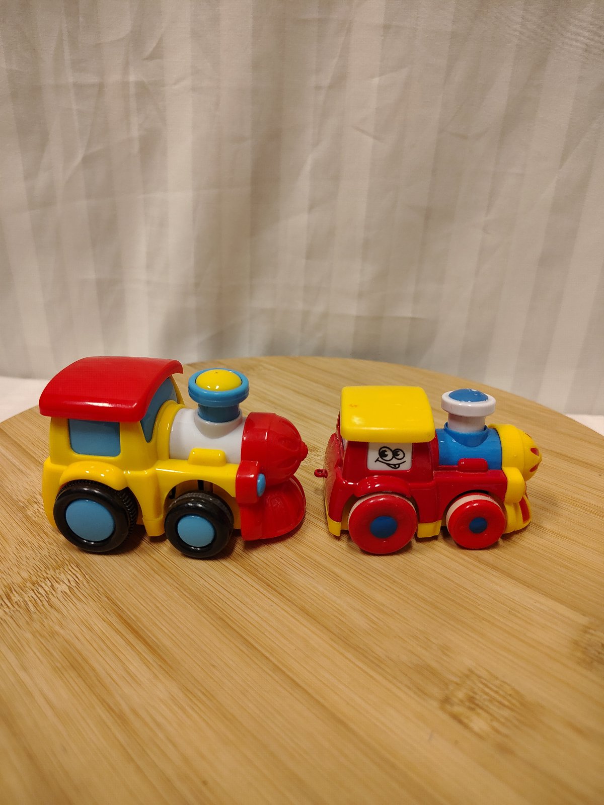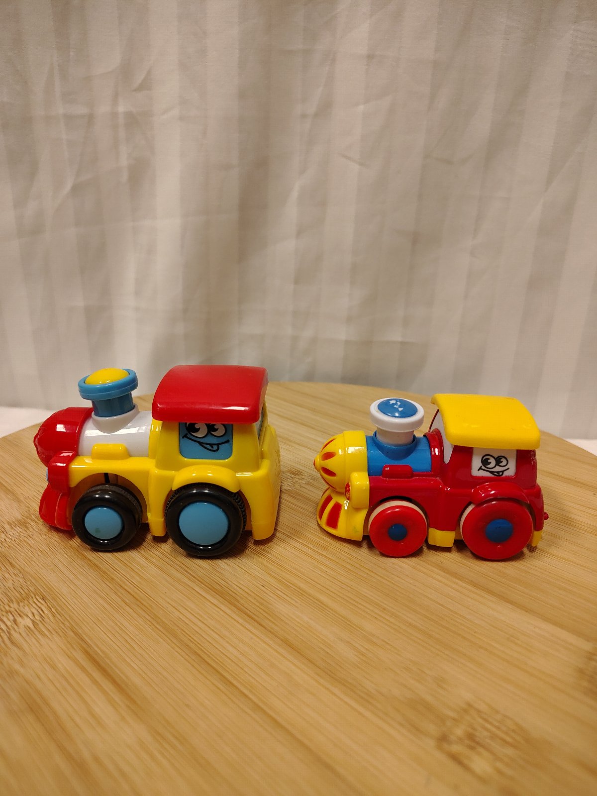 Set veselých mašiniek, pohyblivé komíny, ide o set dvoch obľúbených detských lokomotív, ktoré sú známe svojou odolnosťou a interaktívnym prvkom. Obe mašinky majú pohyblivé komíny, ktoré počas jazdy kmitajú hore a dolu. Žltá mašinka funguje na zotrvačník (postrčenie vpred), červená na spätný natiahnuteľný pohon (pull-back).