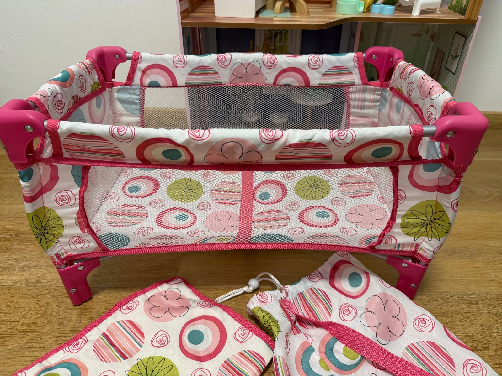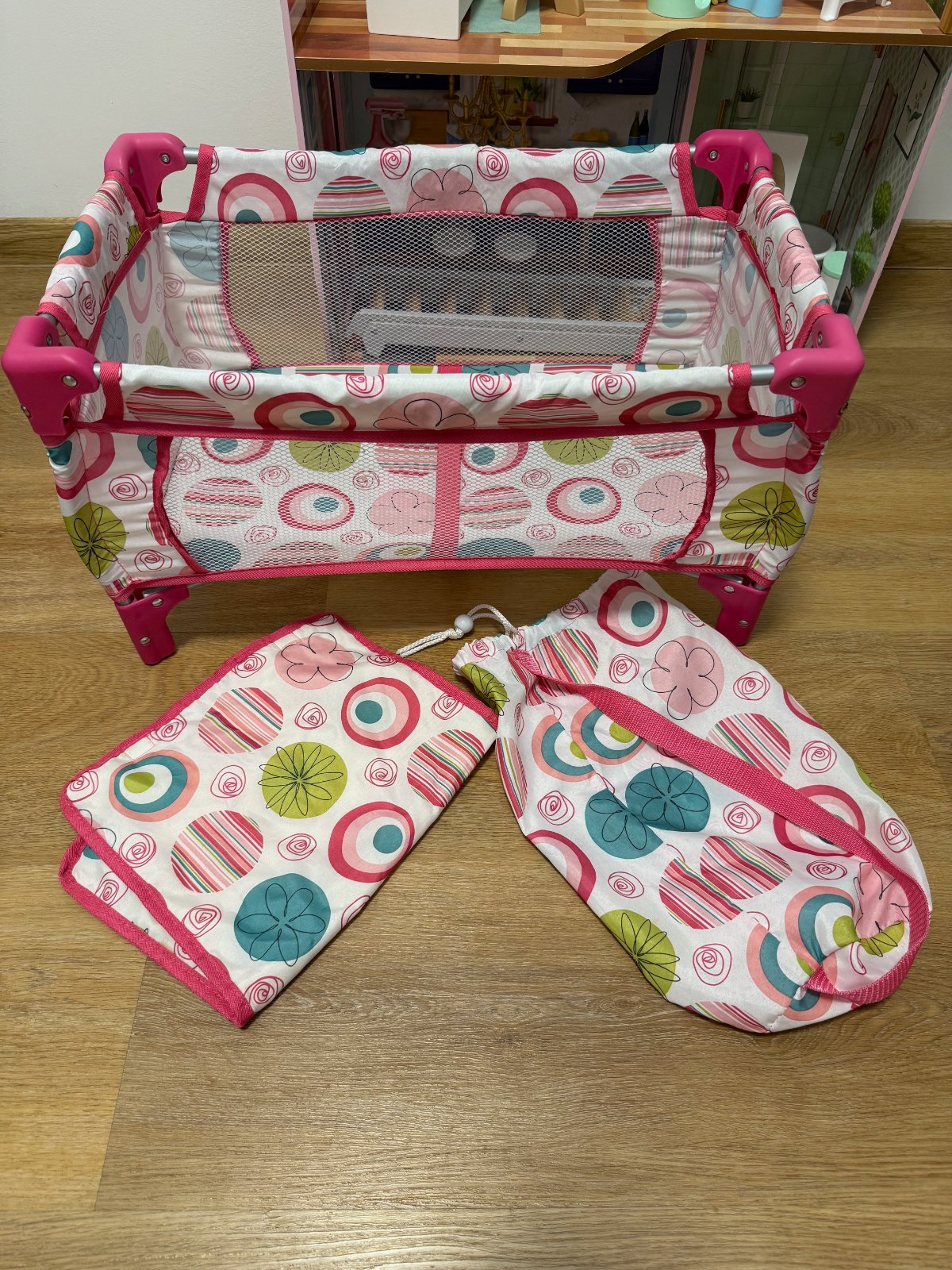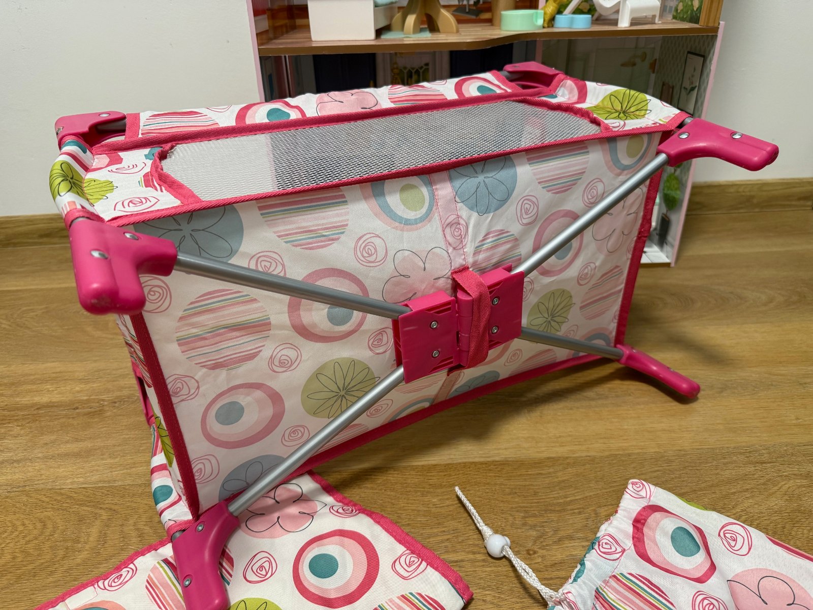 Predám skladaciu postieľku pre bábiky spolu aj s vaničkou a príslušenstvom ako na fotke. Top stav. K postieľke patrí aj dečka a vak do čoho sa dá zbaliť na cestu.