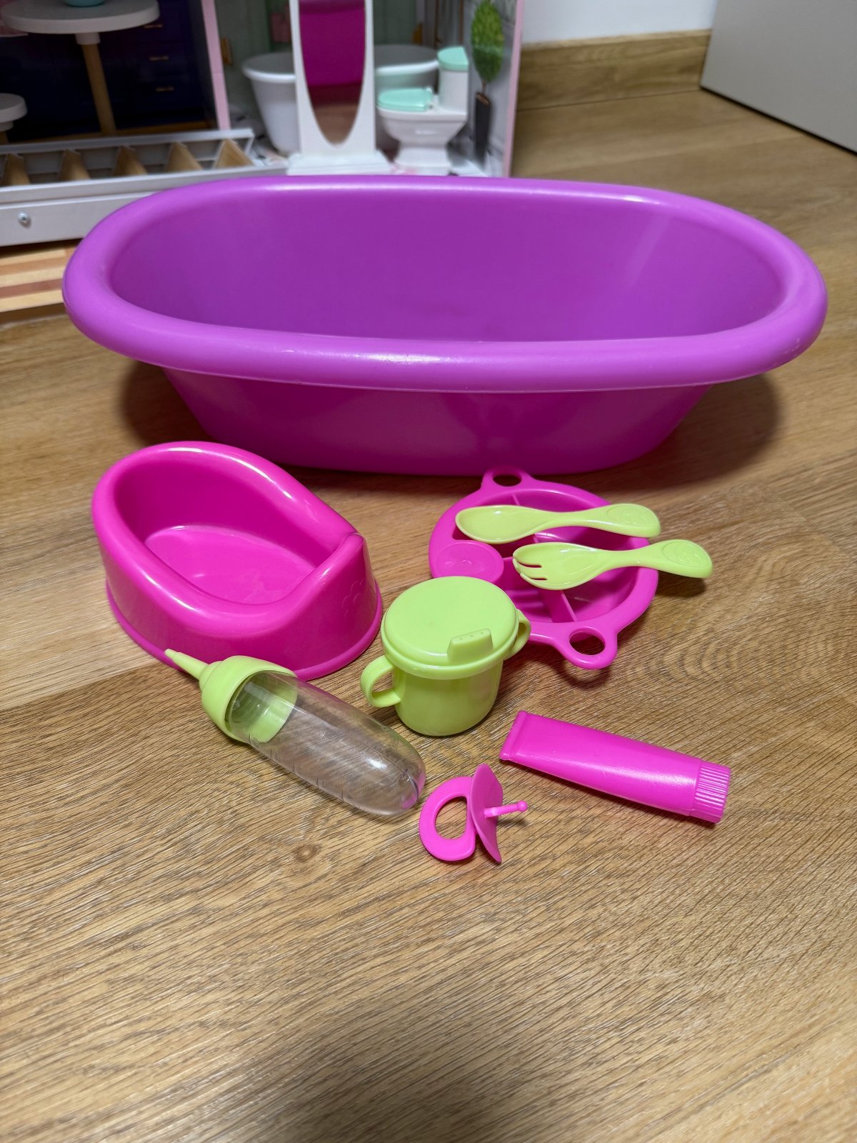 Skladacia posteľ pre bábiky s vaničkou a prísl.