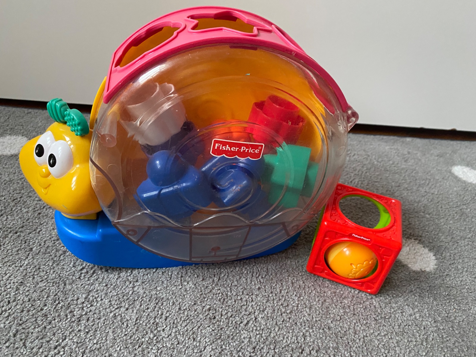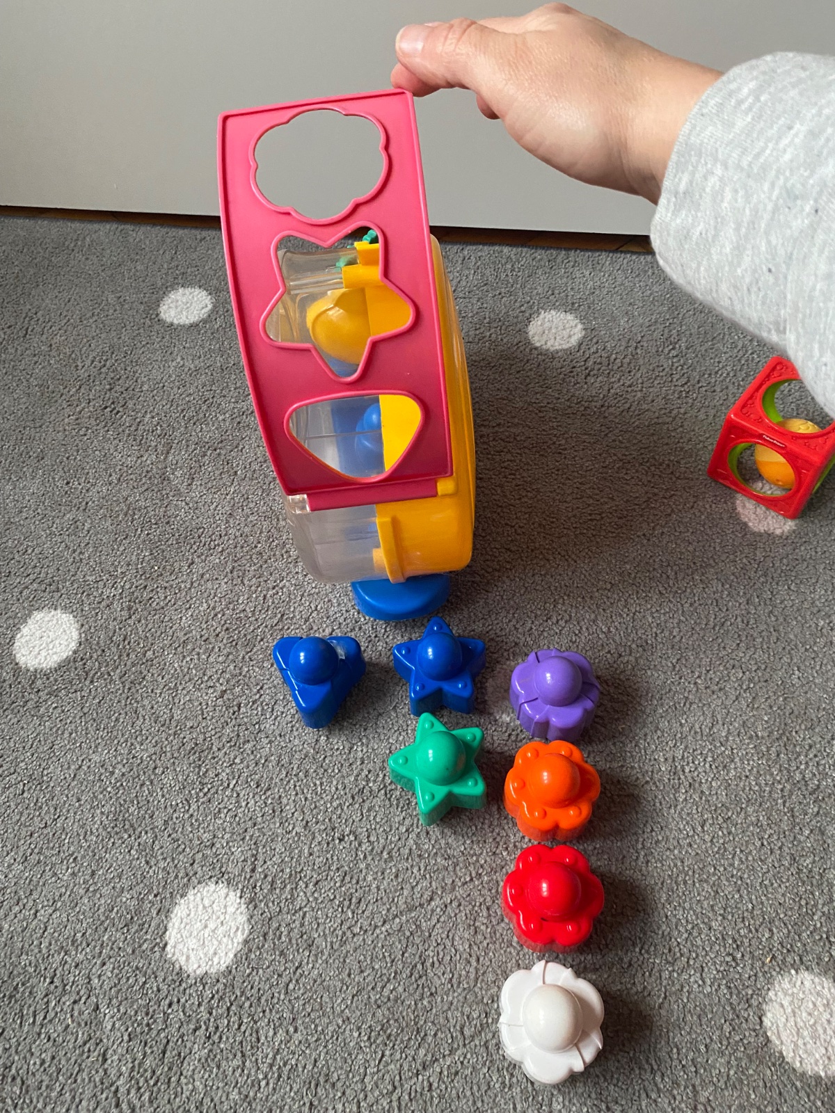 Pridám aj kocku, v ktorej je vložená gulička - je to taká zaujímavá hrkálka. Gulička sa nedá vybrať.