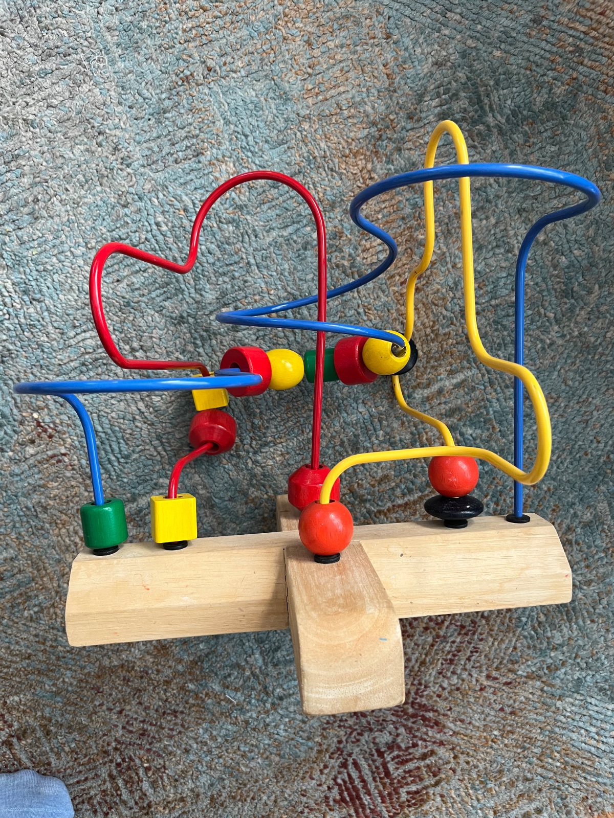 Drevená- kovová hračka v tvare bludiska na rozvoj motorických zručností, v dobrom hranom stave. Menšie chybičky krásy sú zachytené na posledných 2 fotkách 🧮🧮 ✋ Pri posúvaní korálikov z jednej strany na druhú deti rozvíjajú motorické schopnosti a cit v rukách. 🤚