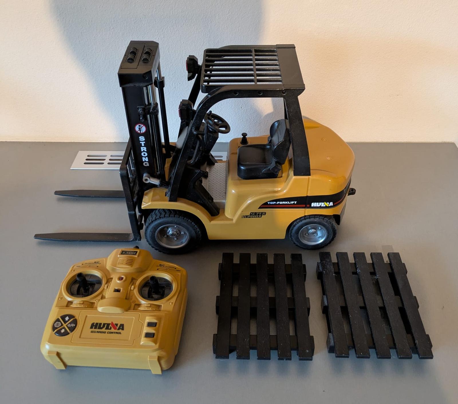 Vysoko kvalitný, stabilný a dobre vybavený vysokozdvižný vozík v mierke 1:10 na diaľkové ovládanie.
