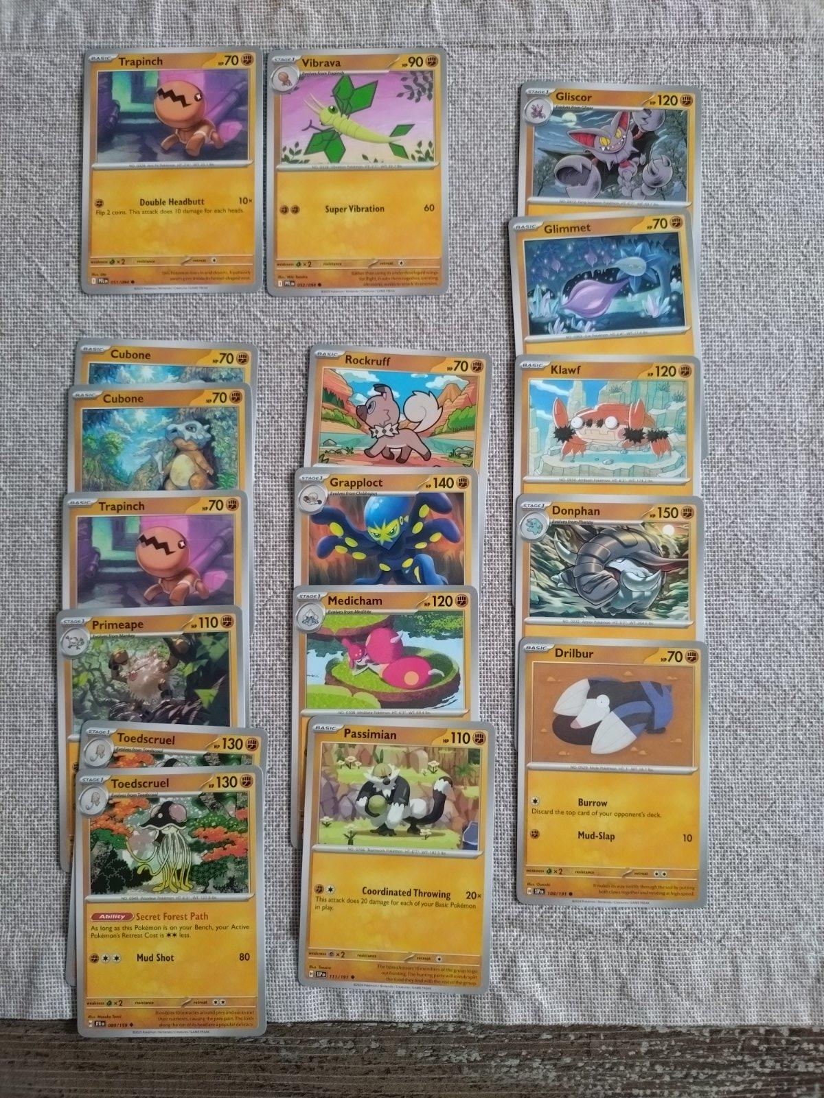 Pokemon karty original, top stav, nehrané, kus 0,10 €, lesklé 0,15 €.
