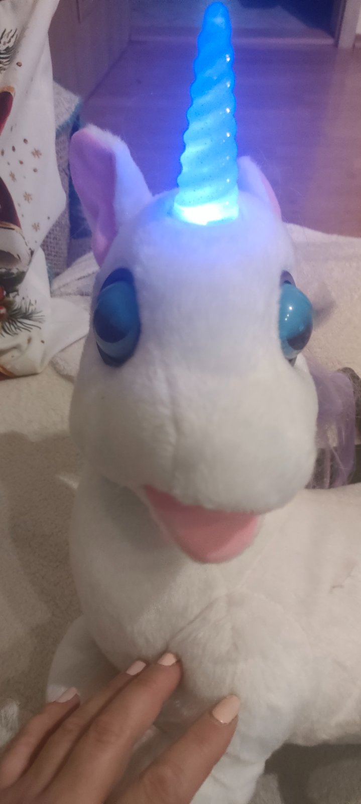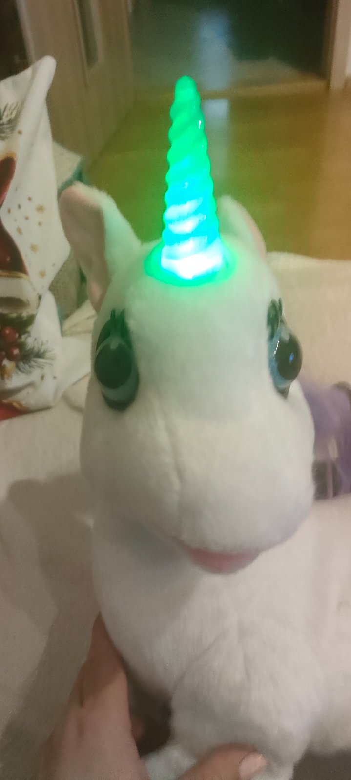 Hraná,rozpráva rozprávky,klipka očami a roh svieti. Hriva trochu strapatá.inak v dobrom stave.