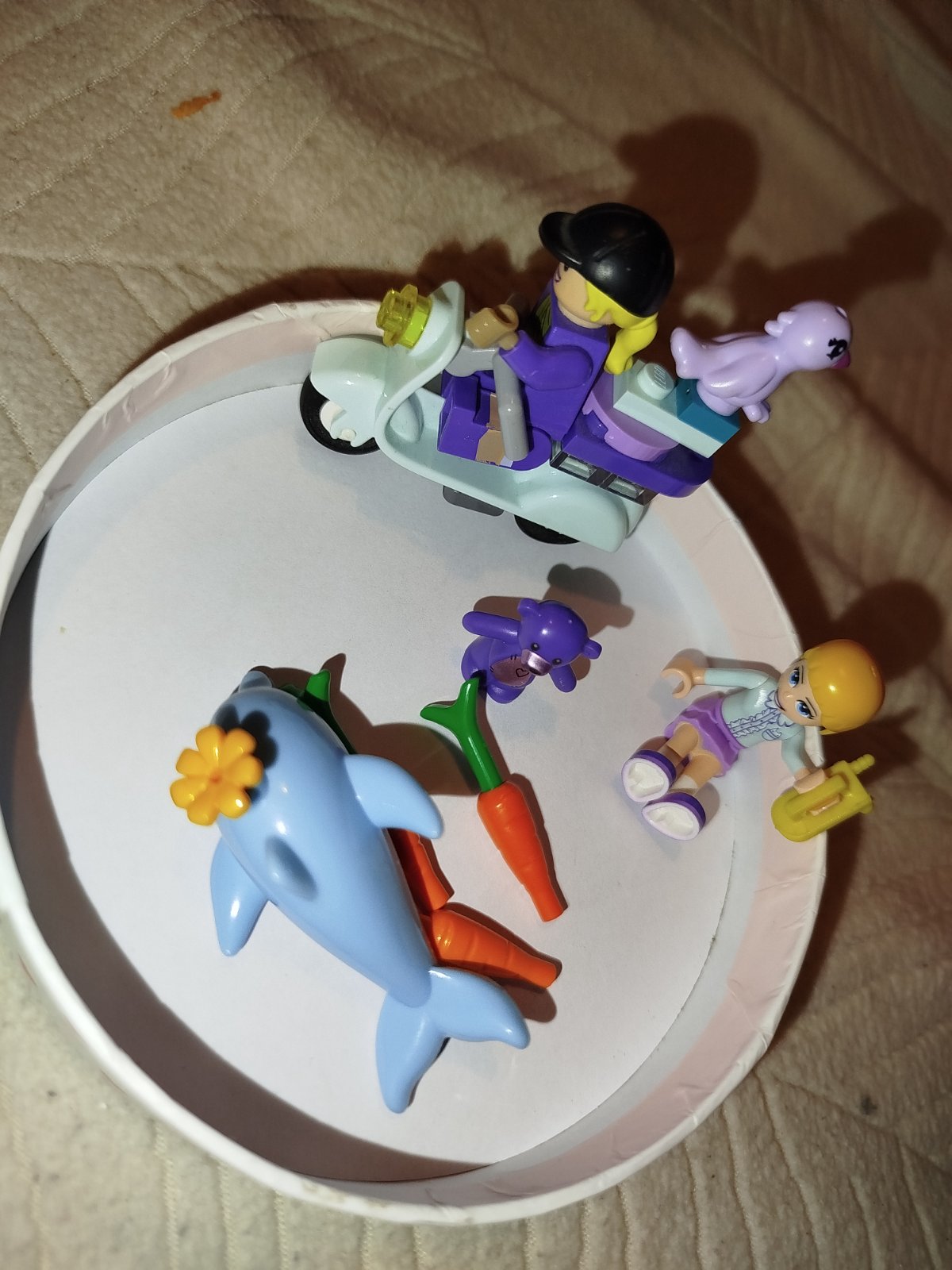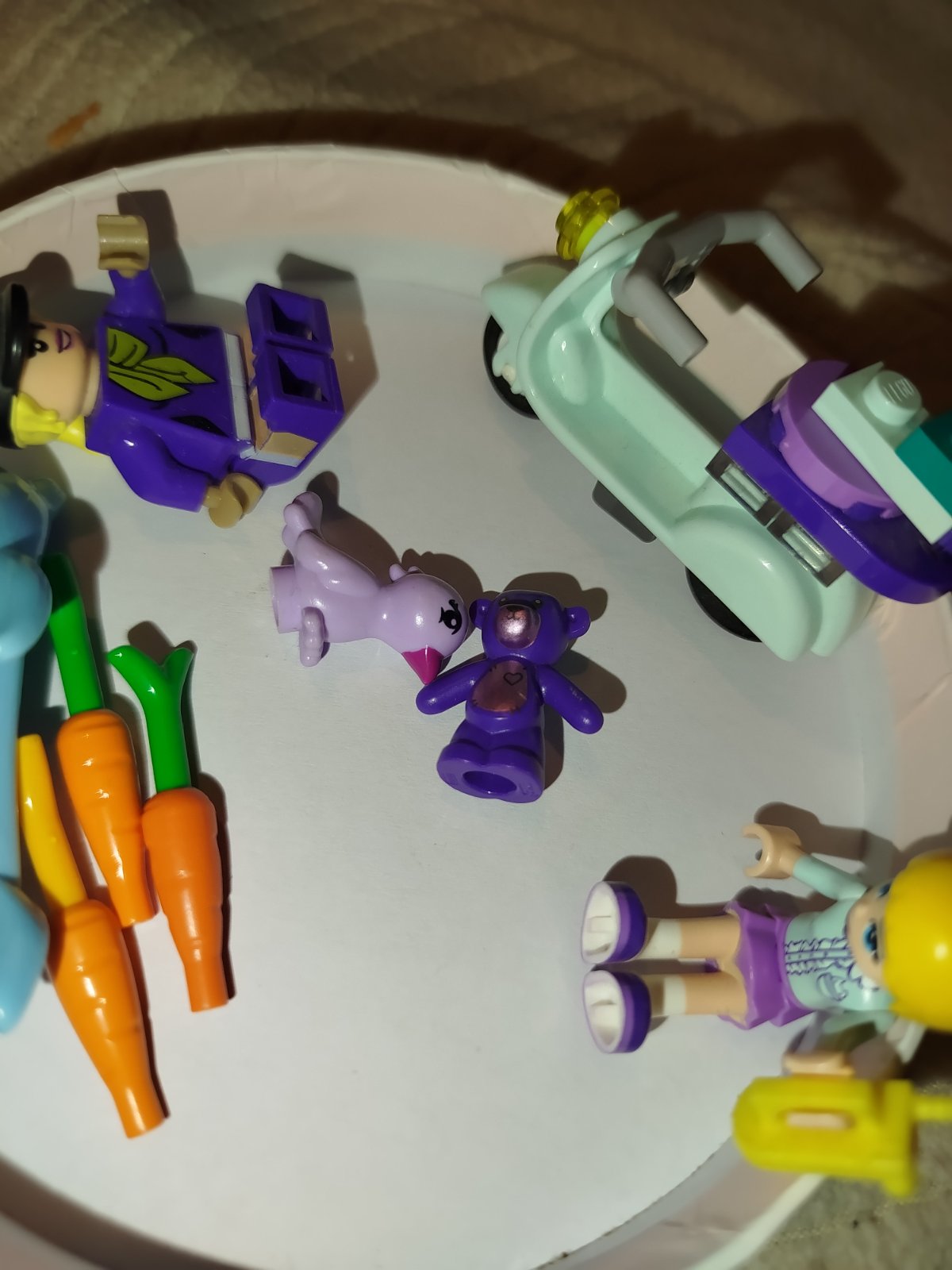 Predám figúrky lego 2x postava 1x motorka delfín,vtáčik a macko+3x mrkva cena spolu 17eur predám aj zvlast