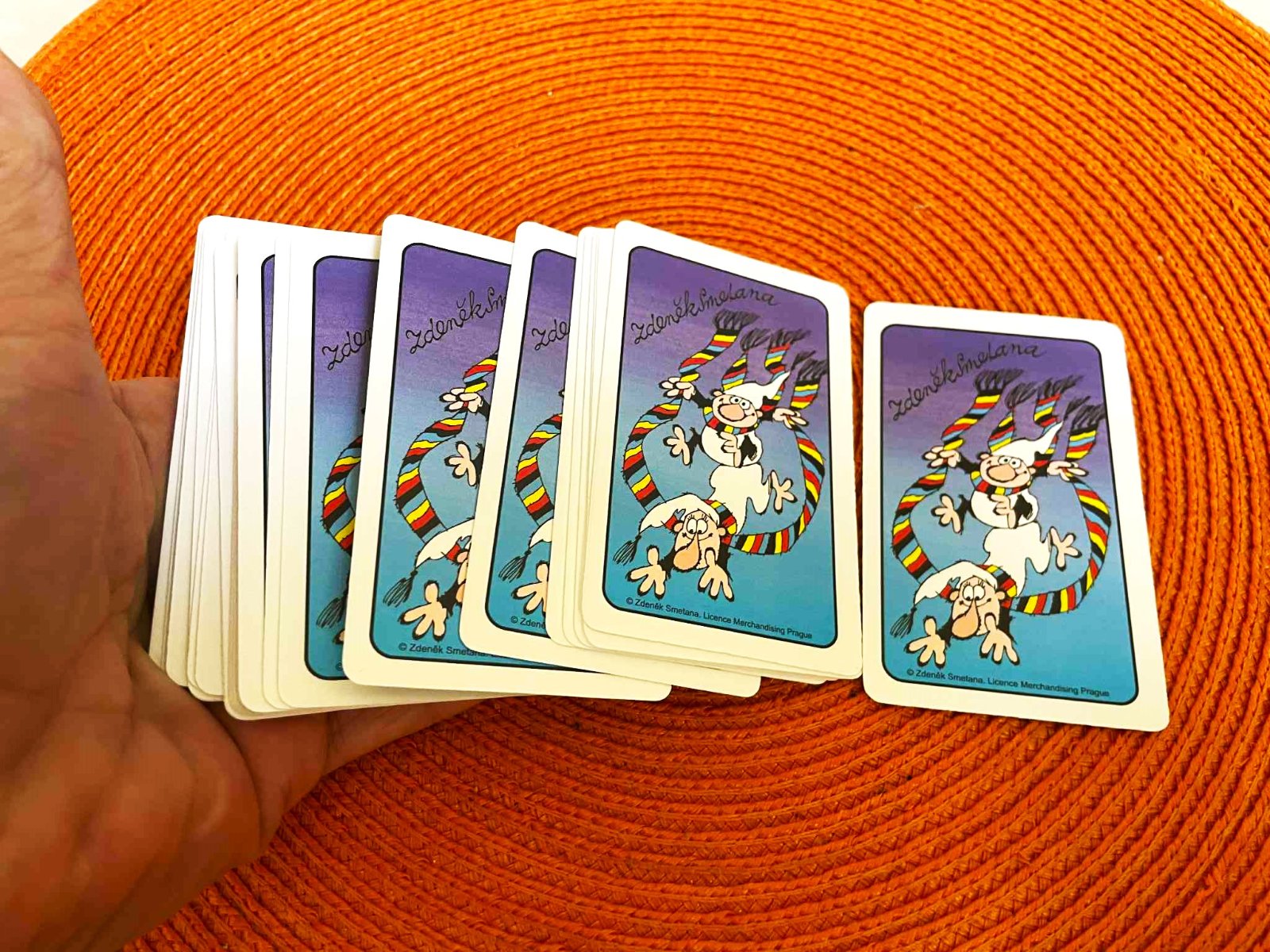 Keď má hráči dvojicu rovnakých kariet, odloží si ich nabok, zostávajúce karty si rozloží do vejára. Hráč po ľavici rozdávajúceho si od neho vezme 1 kartu. Ak ju má do páru, dvojicu odloží. Nasledujúcemu hráčovi ponúkne na výber kartu zo svojich.