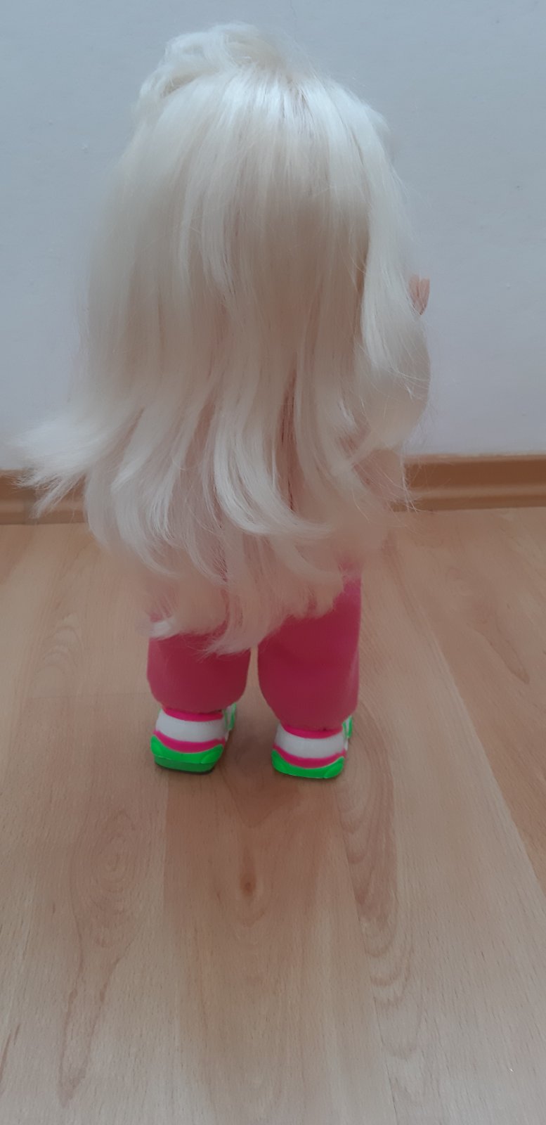 Vyska 38cm,rozprava po nemecky,chodi,bezí,pohybuje rukami,s celenkou a sluchadlami,dlhými vlasmi,dajú sa česať.