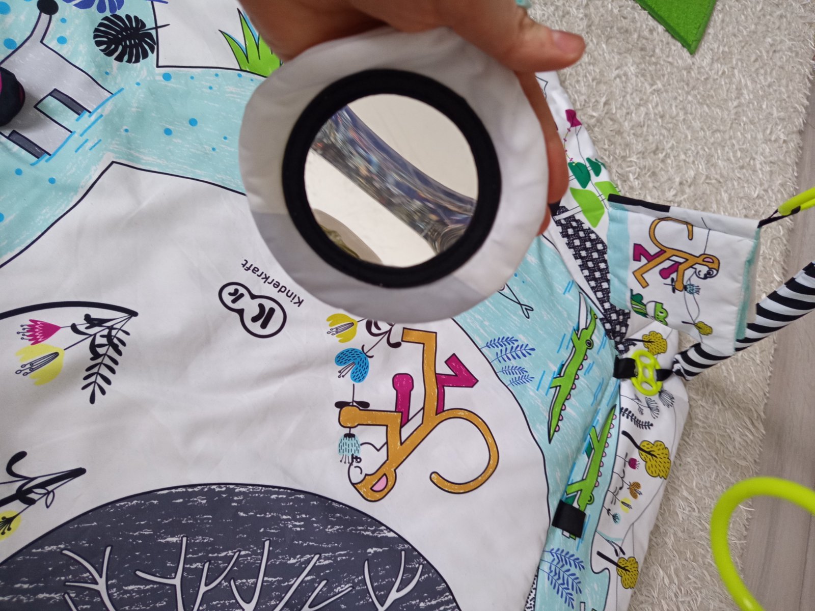 Stimuluje rozvoj: dotyk, zrak, sluch.
