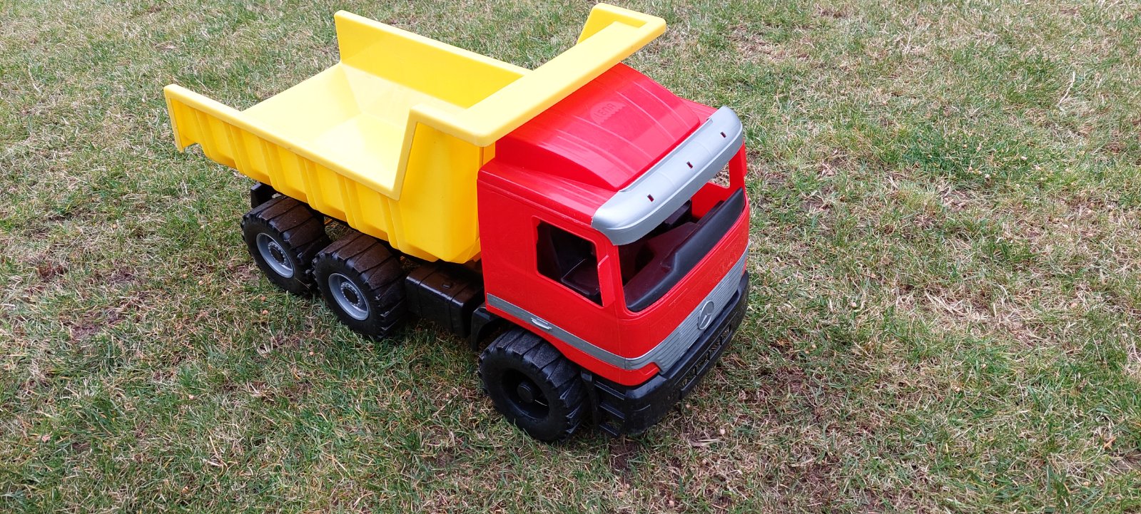 Auticko je v dobrom stave,len male plastove casti na zaistenie vyklapnej casti zo spodu su mierne ohnute,ale nic závažné. Všetko funguje. Sklápač 2 osý je plastové auto o veľkosti 62 cm, s rozšírenou korbou na vozenie veľkého a ťažkého nákladu.nosnosť: 50 kg