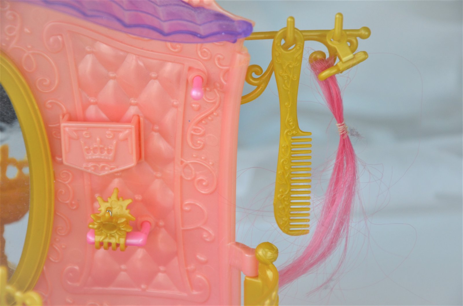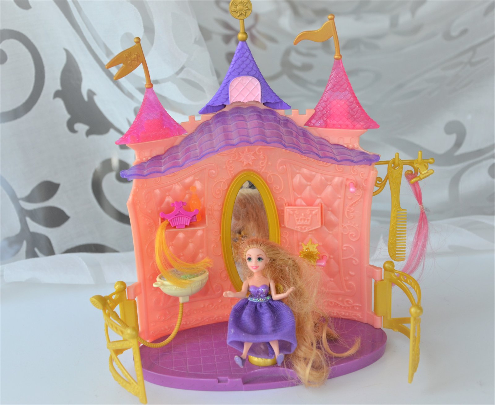 nevymieňam!!hrané,k bábike sú sponky,šampón,štipček,hrebienok,rozmer zámku,výška 25cm,šírka 18cm,bábika 9cm...kuk aj na iné moje inzeráty