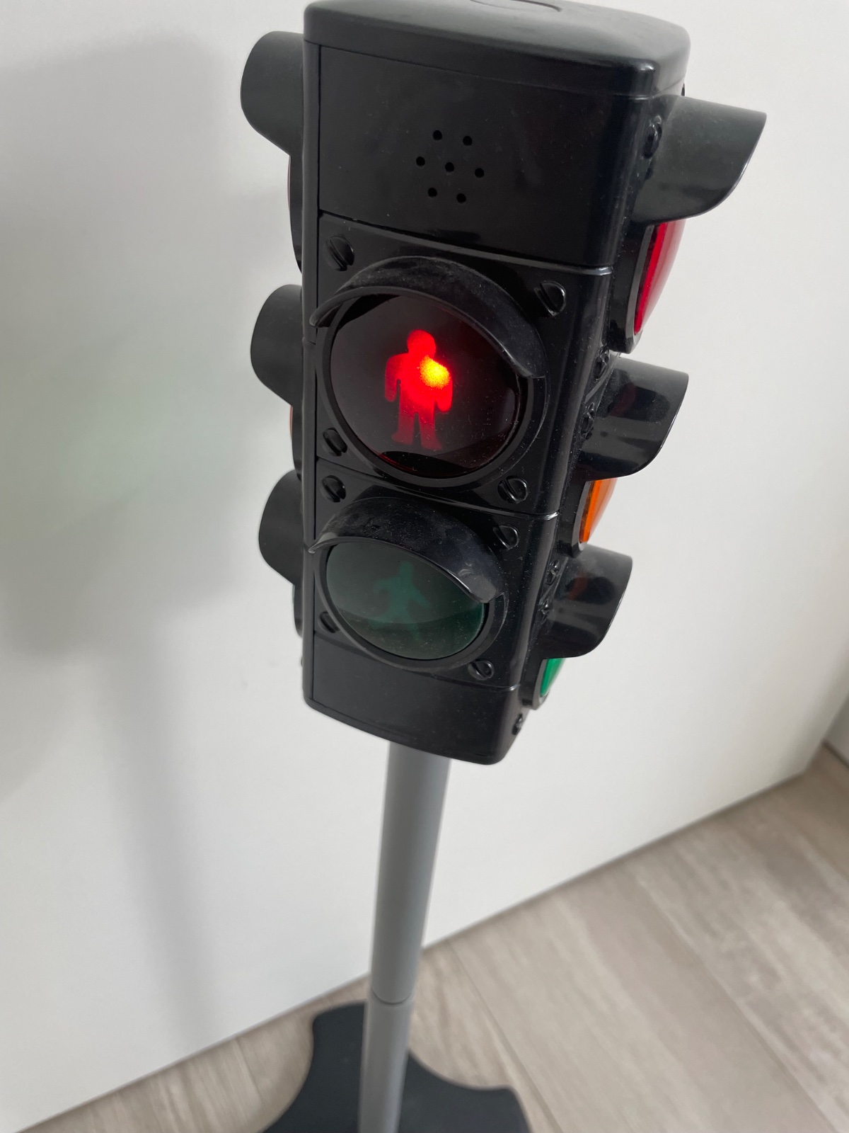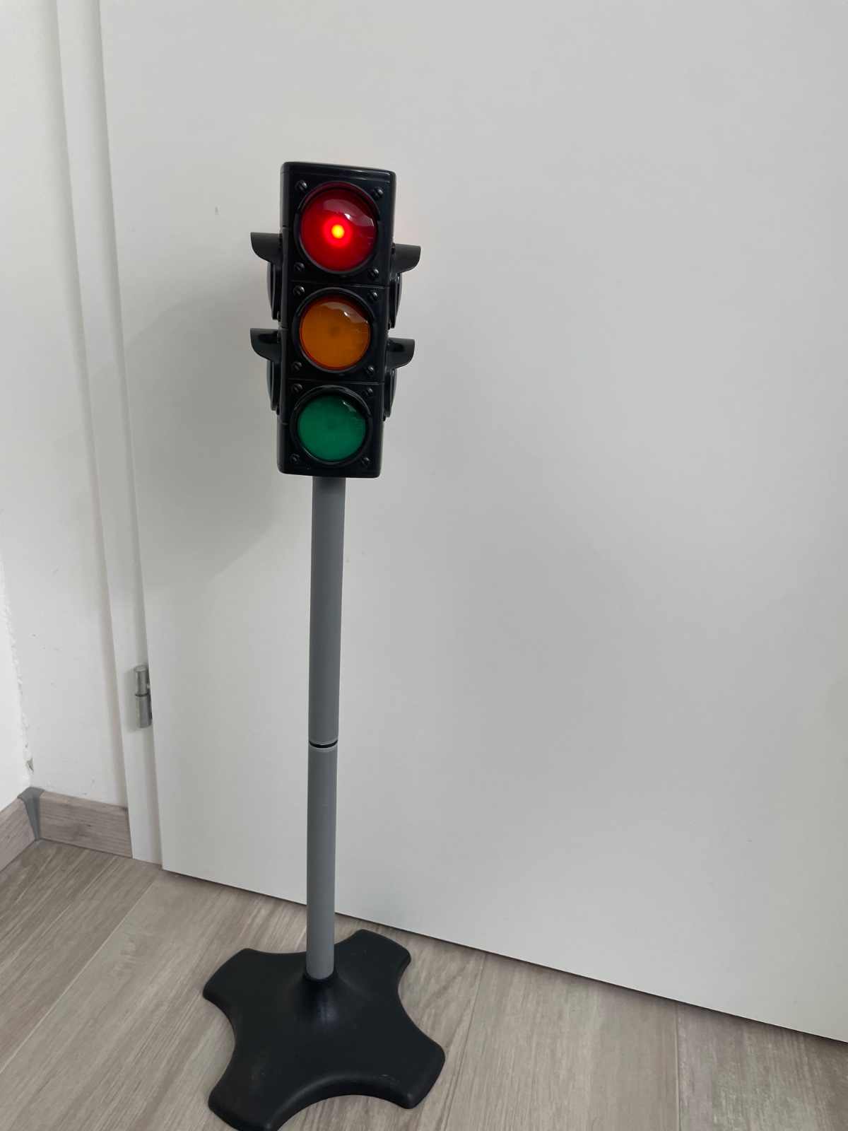 Semafor na batérie vo veľkosti 72 x 20 x 20 cm. Semafor má 2 módy - herný (automatická zmena farieb) a náučný (ručný výber farieb po stlačení tlačidla).