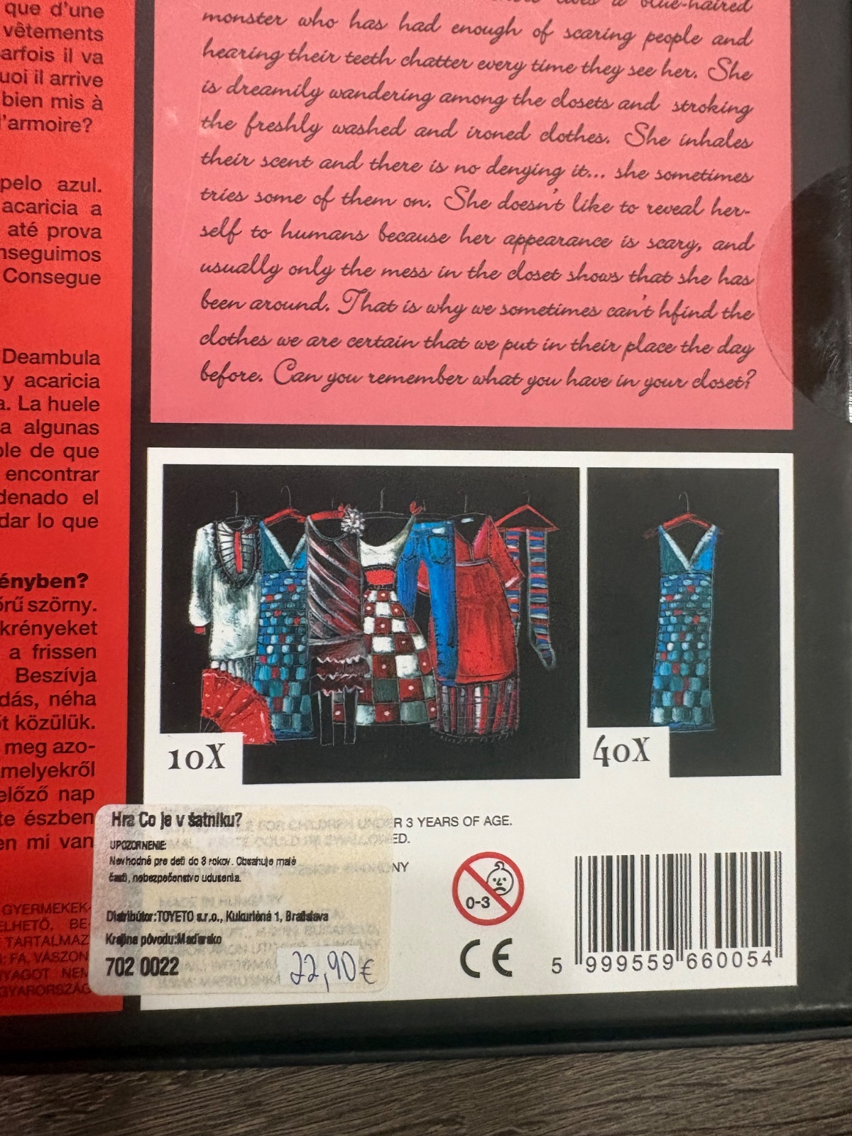 Obsah balenia: 40 kartičiek s oblečením, 10 kariet so šatníkom