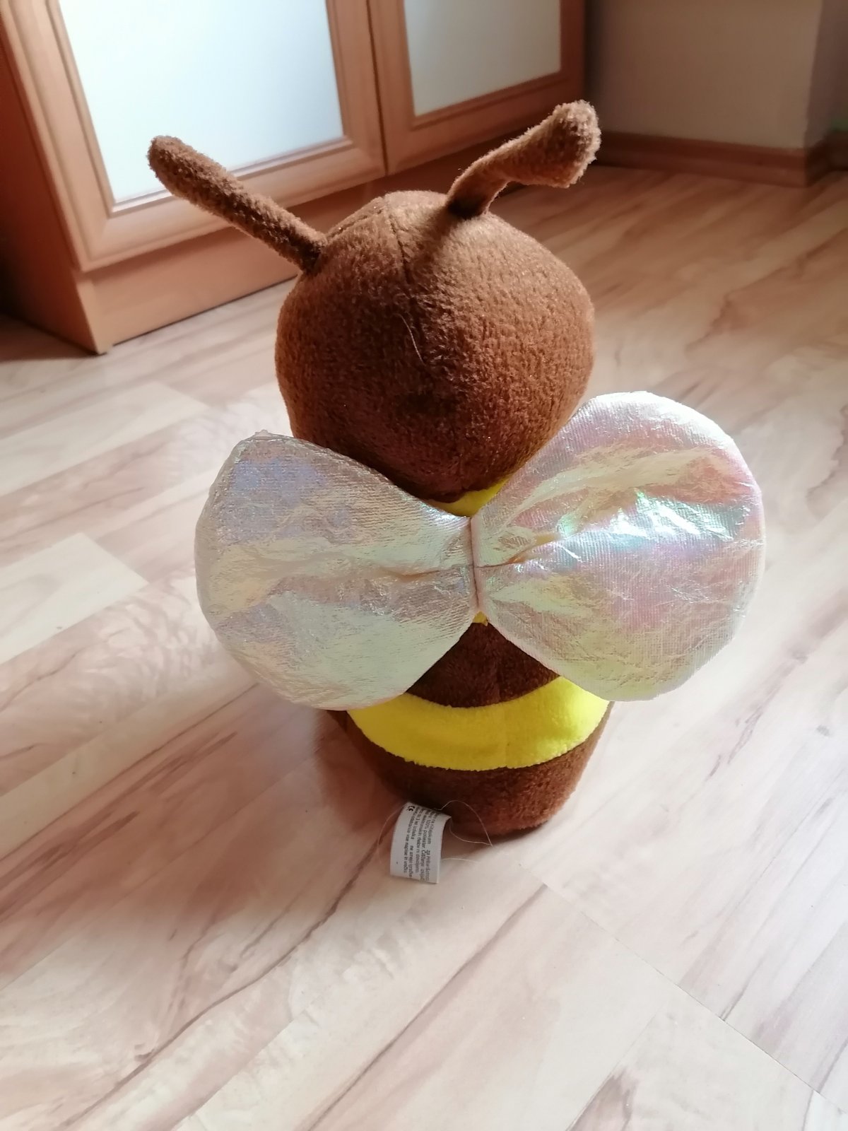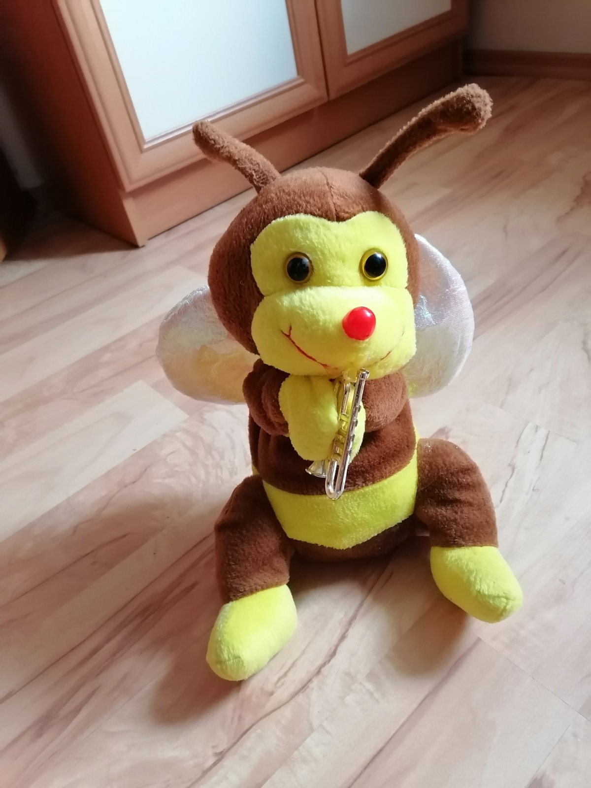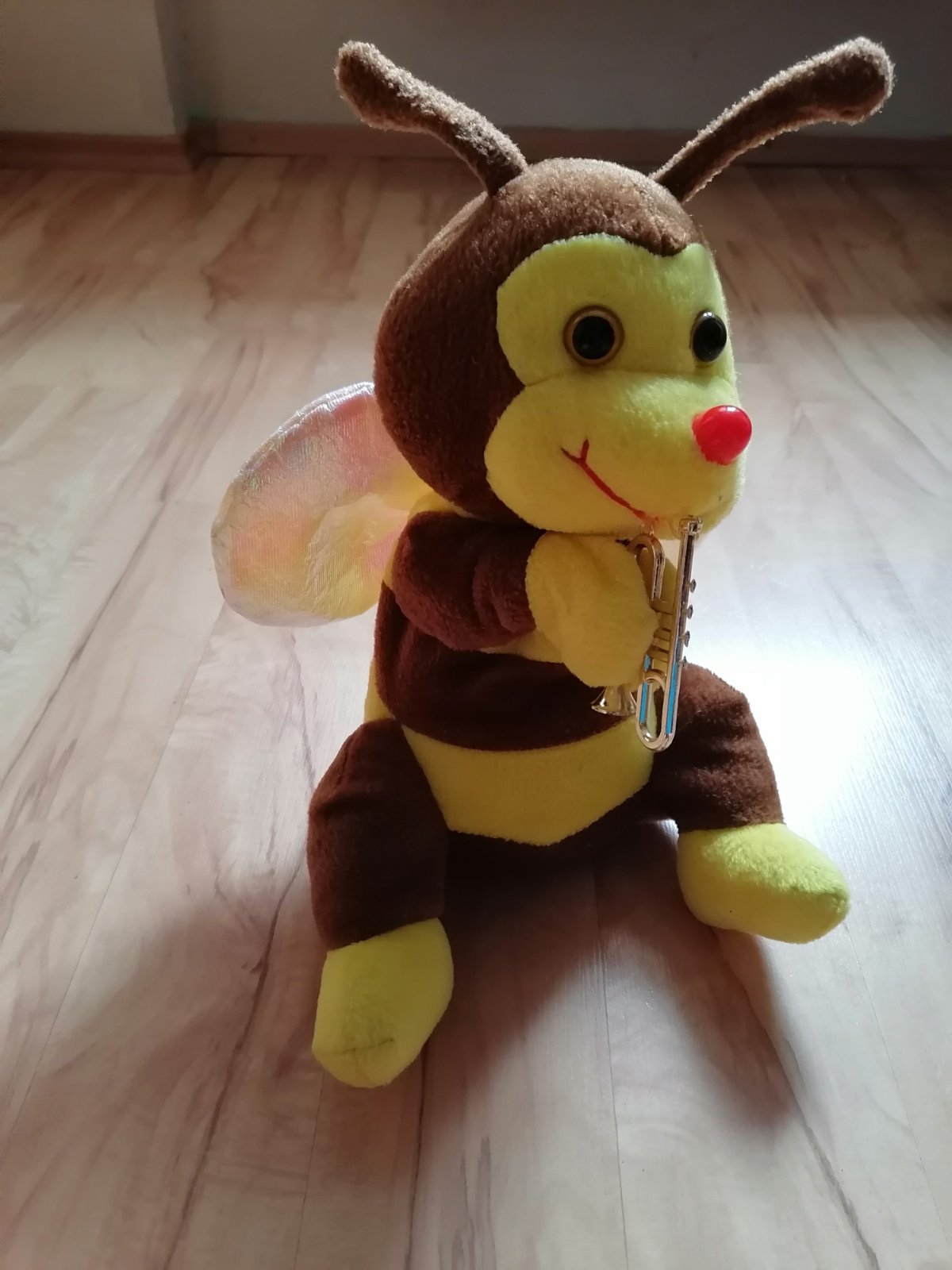 Zvuková včielka. Po zatlačení za ruky, hraje akoby na trúbke. V super stave. Krídelká má šušťavé a trblietavé.