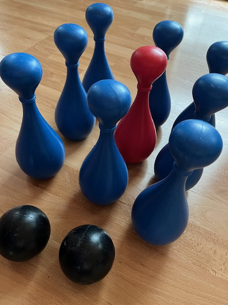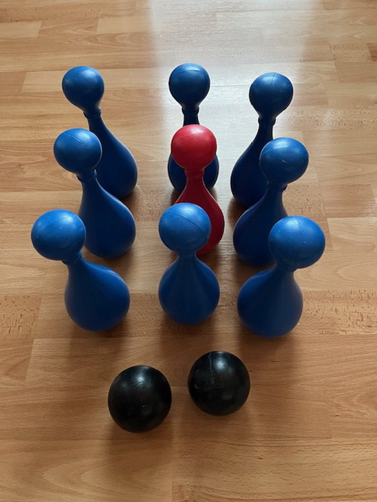 Sada deviatich plastových kolkov s veľkosťou 22 cm a 2 loptičkami, vhodné pre hru doma i vonku