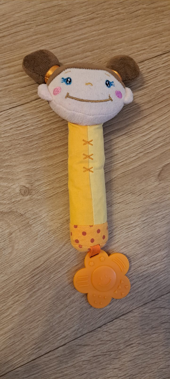 Plyšové hračka, pískacia, s kúsadlom, do kočára, akurát do ruky. Bez poškodenia.