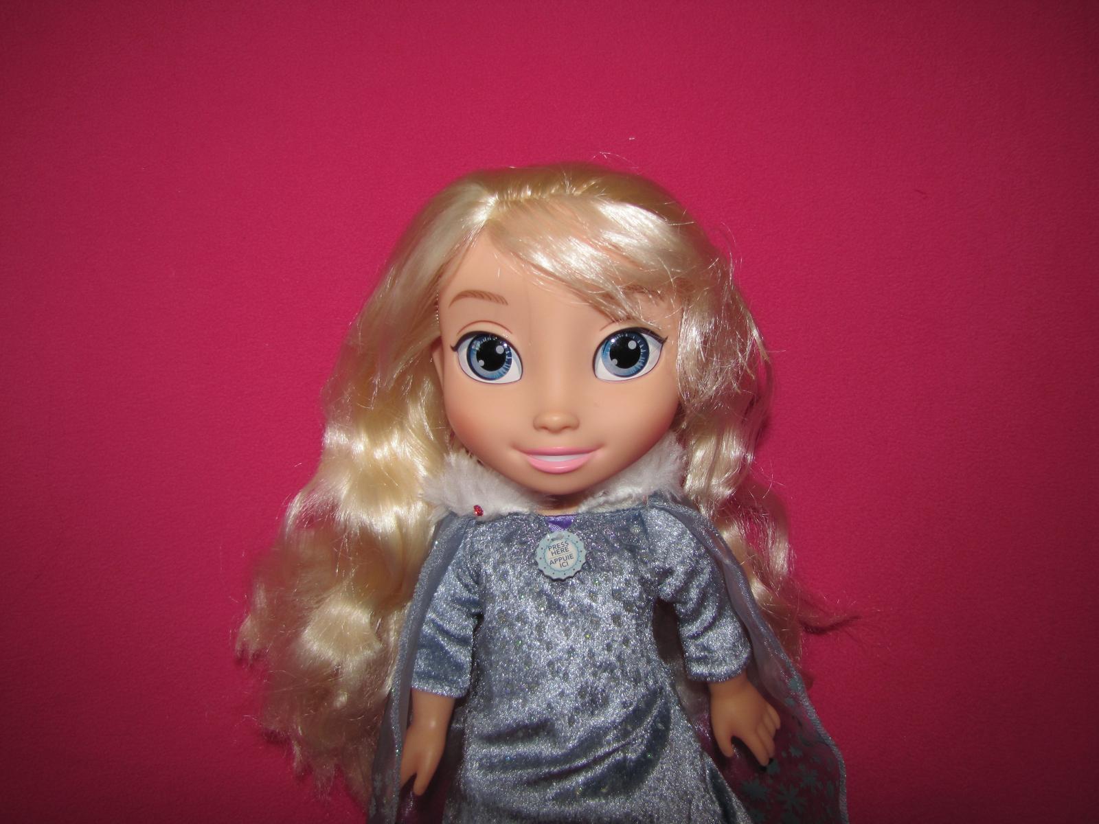 Bábika spieva a svieti jej sukňa. Bábika je ako nová.