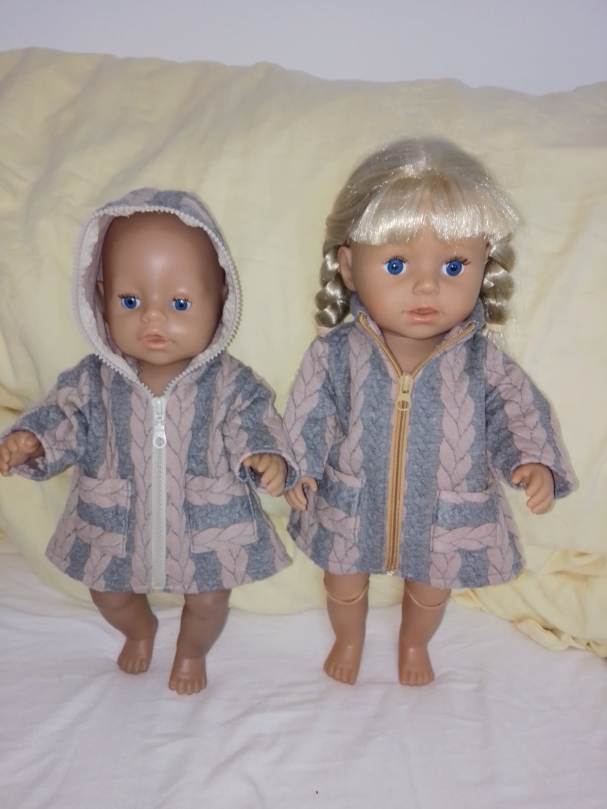 oblečenie je šité, nehrané. Vhodné pre bábiku baby born 43 cm a staršiu sestričku 43cm.