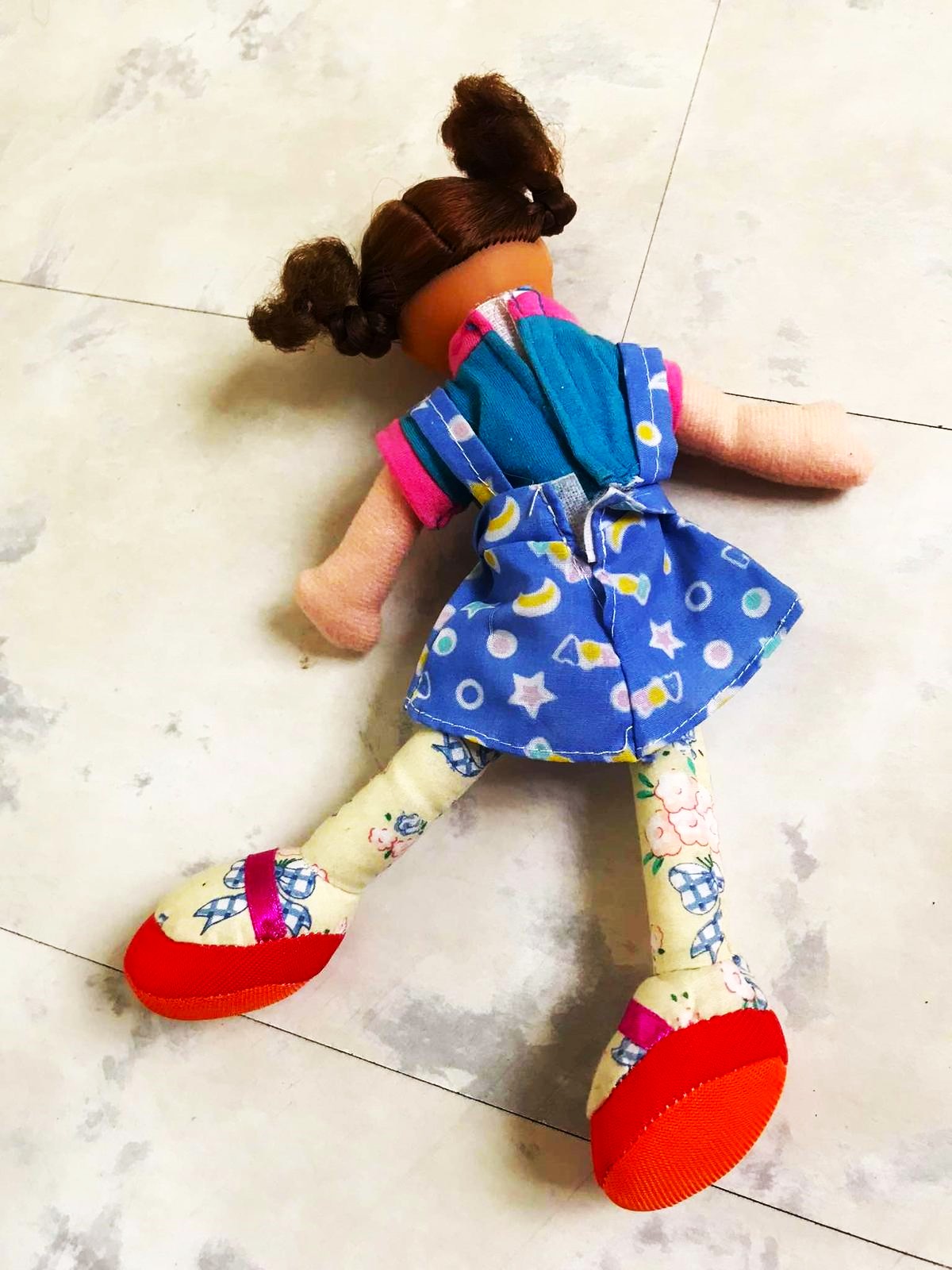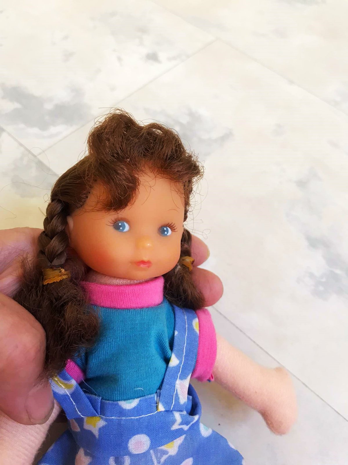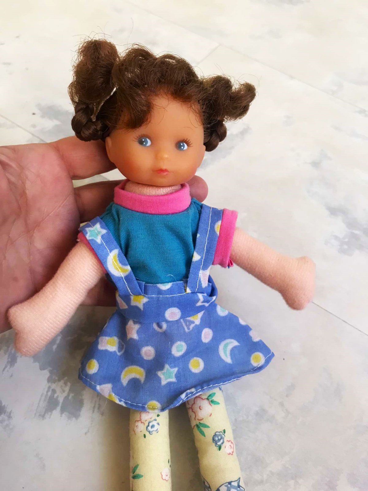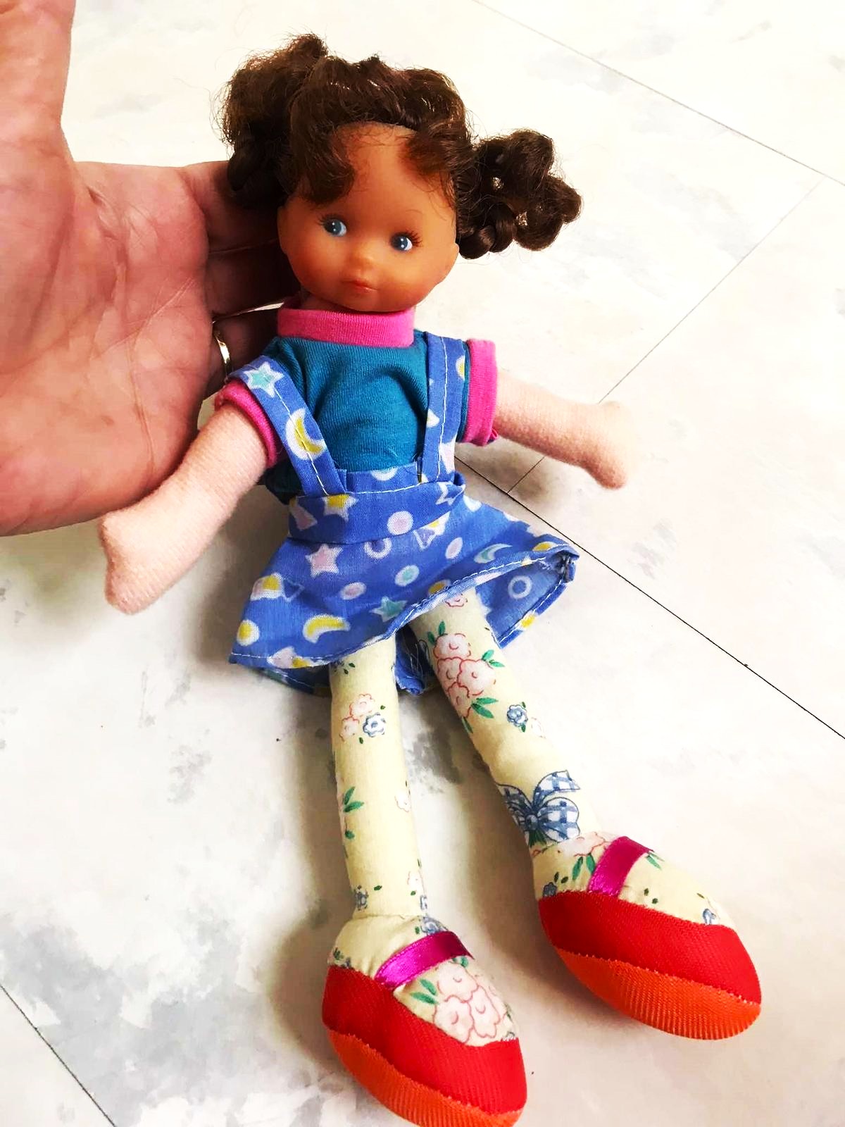 nevšedná netuctová a neokukaná mäkká bábika,tvárička z plastu,inak je textilná,26 x 6 cm