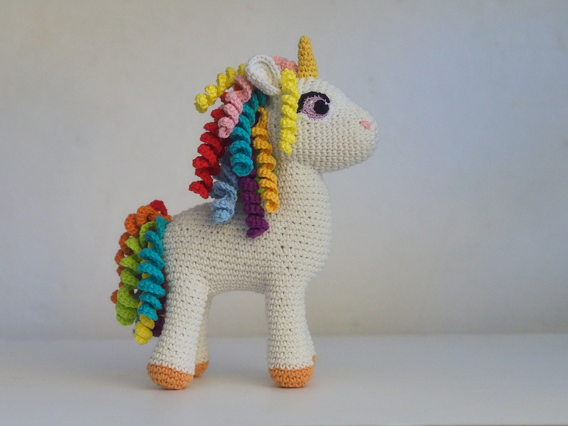 Háčkovaný jednorožec. Bavlna + bavlnenoakrylova priadza. Vankúšová výplň. Háčkované očká. Výška 25 cm.