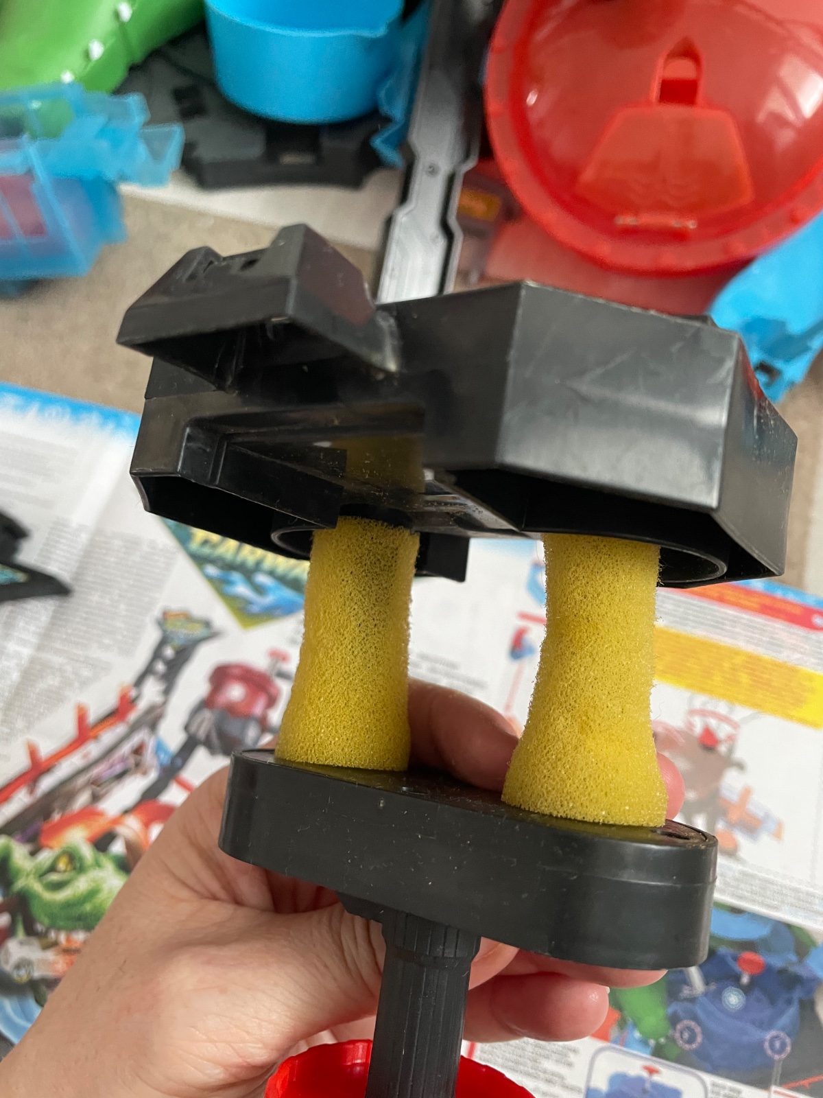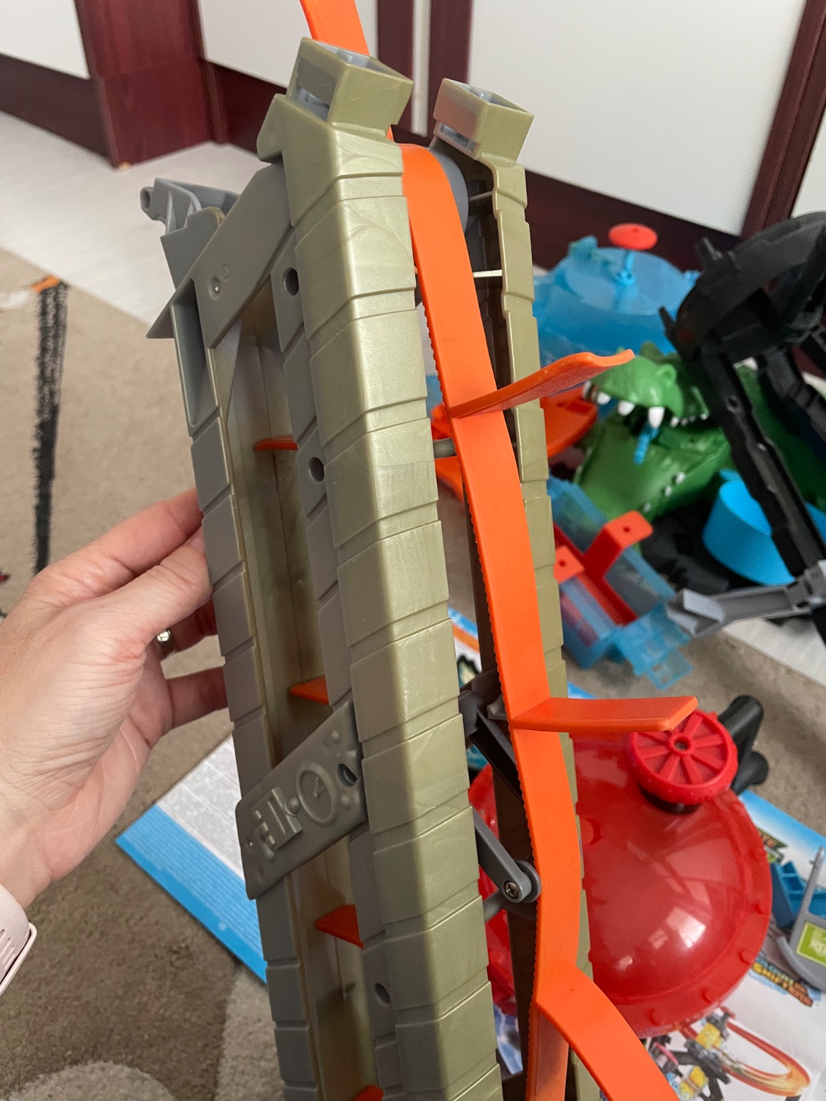 Syn sa s tým už dlho nehrá, ale keď bol menší, tak sa s tým hral doma na balkóne s vodou (hore je nádrž, z ktorej ide voda na dráhu) alebo dá sa aj dnu bez vody (my sme niekedy mali aj dnu s vodou v malom nafukovacom bazéniku 😂).