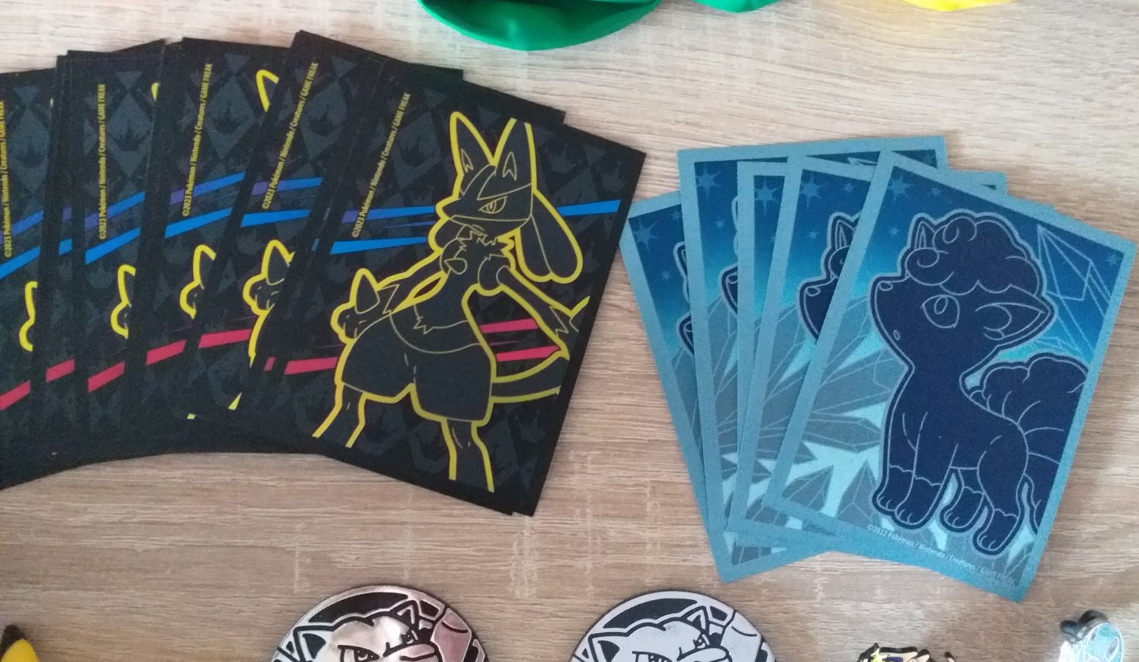 1 ks zelený obal, čierne obaly Lucario 15 ks, modré obaly Vulpix 5 ks, cena 0.20 eur za kus.
