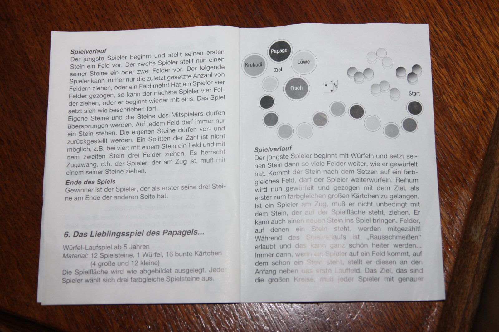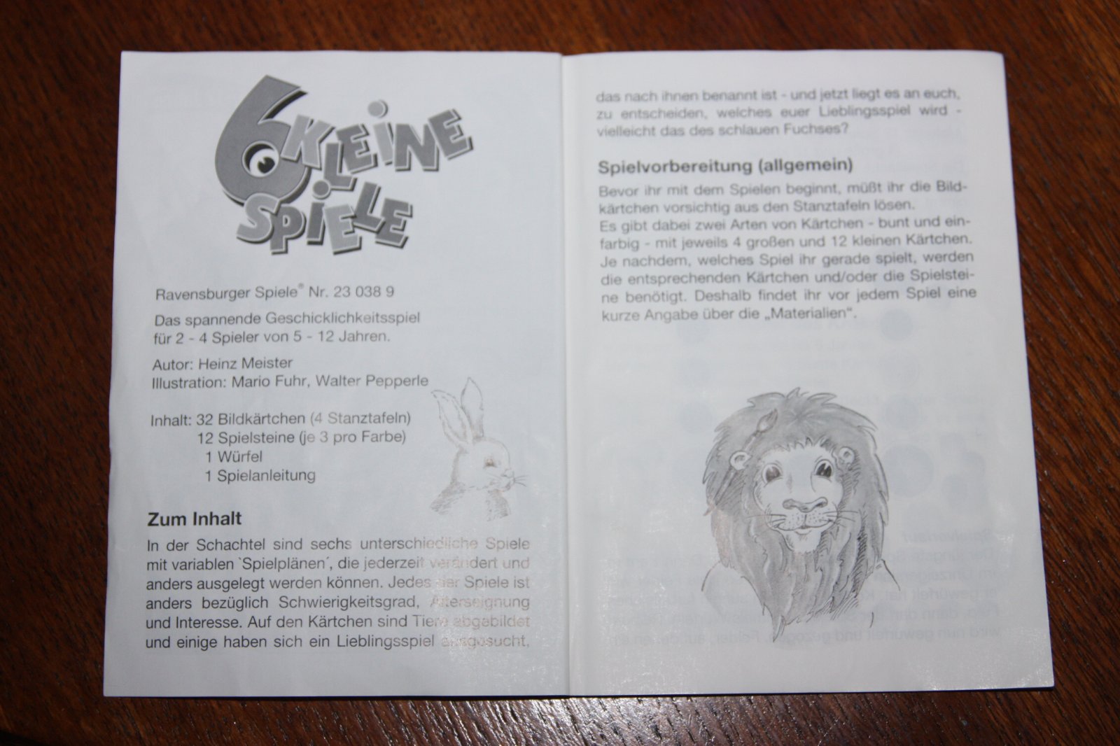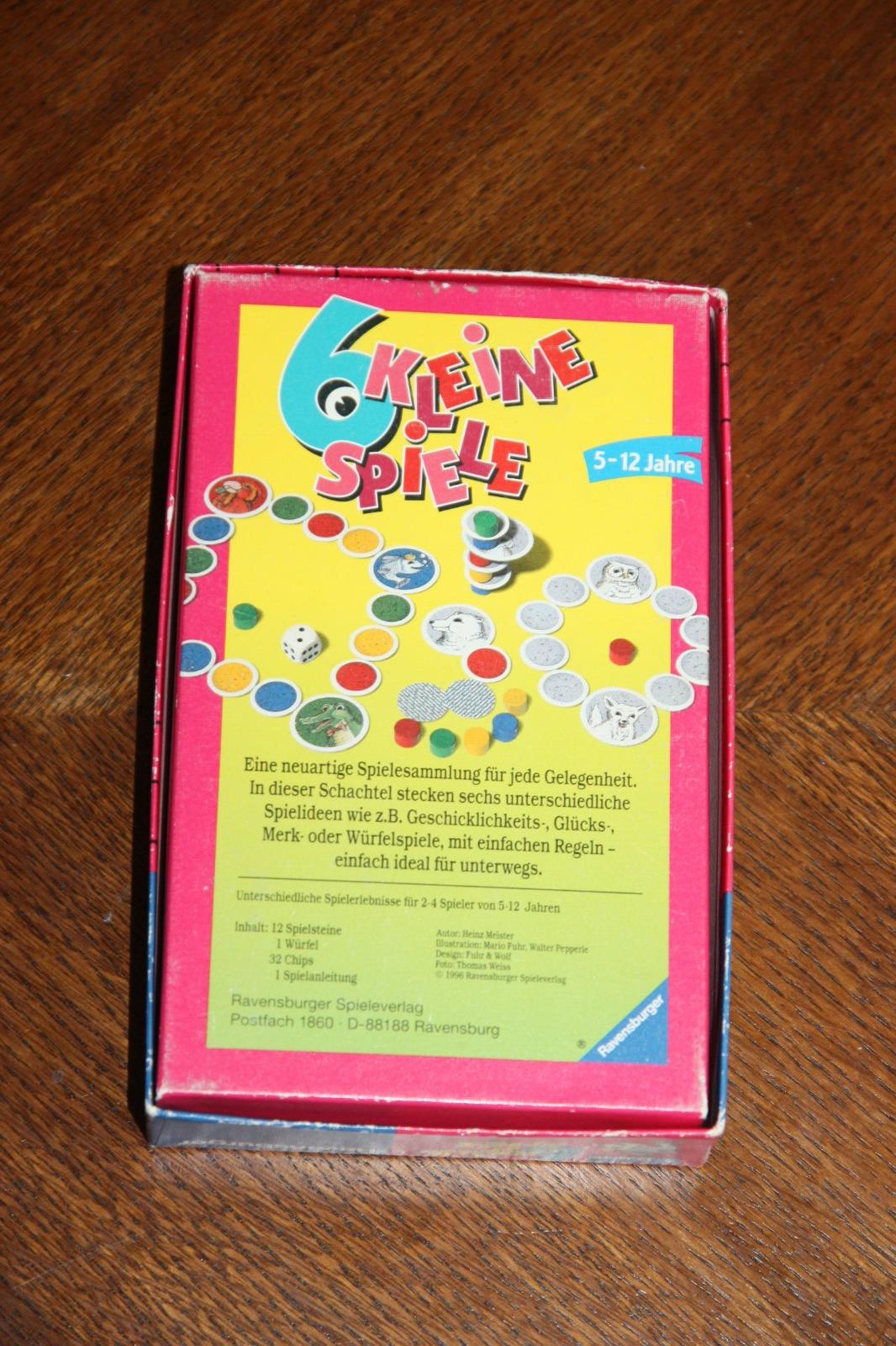 6 hier v jednom - pre 2-4 hracov od 5 rokov. Pravidla v nemcine. Hrana, zachovala, kompletna.