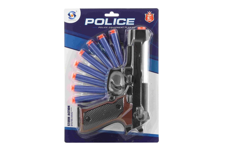 Detská policajná pištoľ na penové náboje. Balenie obsahuje 8ks penových nábojov.
