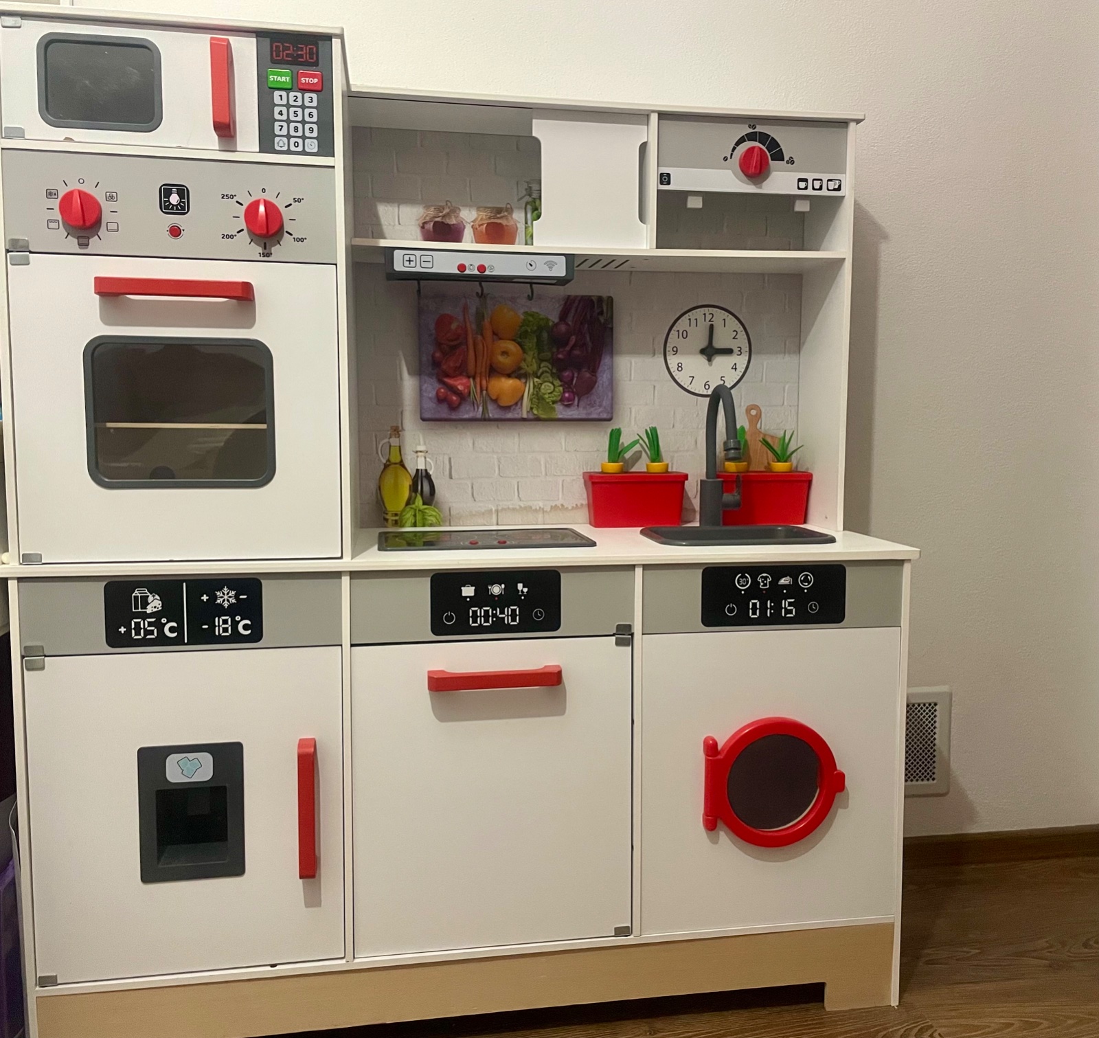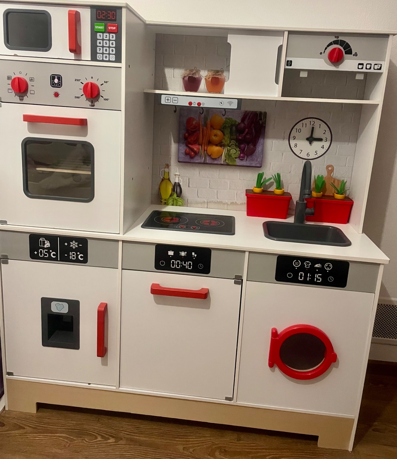 Predám nádhernú kuchynka, v super stave s veľkým príslušenstvom. Pridáme aj kávovar, mixér, toustovač…plus veľa ďalšieho… Kuchynka je naozaj veľká vhodná aj pre väčšie deti. Vydáva zvuky aj svieti. Rozmer vxšxh 120 x 109 x 40 cm. PC len kuchynky 145€ a plus príslušenstvo… je vhodná aj pre chlapca aj pre dievča a vydrží naozaj dlho