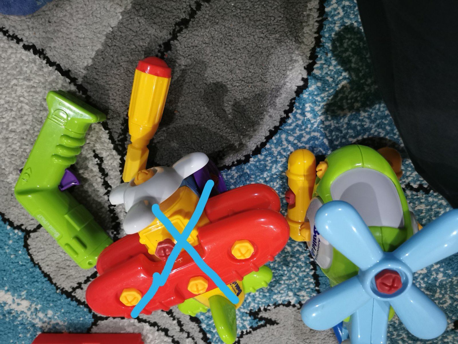 Vrtuľník na skrutkovanie. Súčasťou je aj skrutkovač a náradie na skrutkovanie na batérie. Chýbajú iba nástavce na šrubovanie,možno sa podarí nejako doplniť. Rozoberať a skladať sa dajú aj ručne.Lietadlo predané. V