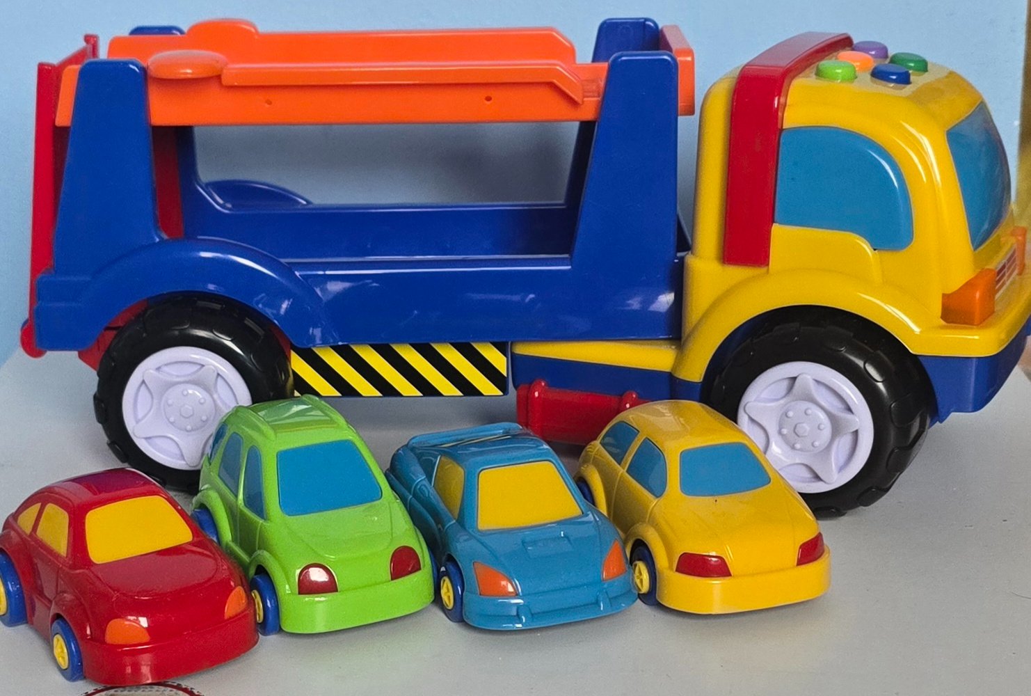 Ponúkam odťahové vozidlo so 4 autami.Po stlačení horných tlačítok vydáva zvuky